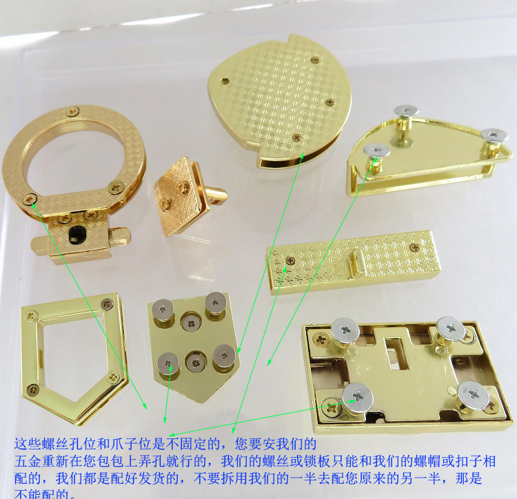 - 1 комплект светло-золотистых круглых верхних и нижних остроконечных врезных замков