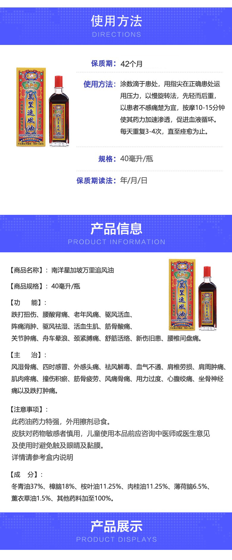 星洲 Сингапурское масло Wanli Zhui Feng 40 мл расслабляет сухожилия, активирует коллатерали, выгоняет газы, удаляет сырость, онемение конечностей и растяжение поясничного отдела позвоночника.