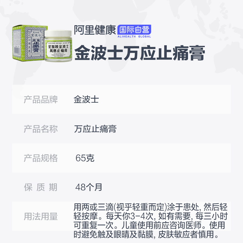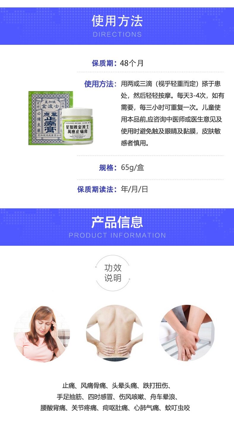 金波士 Wan ying анти -пенязитная головная боль разбитая комара укус 65 г гонконг -ревматизм подлинный желе -кашель с ветром массаж ветра