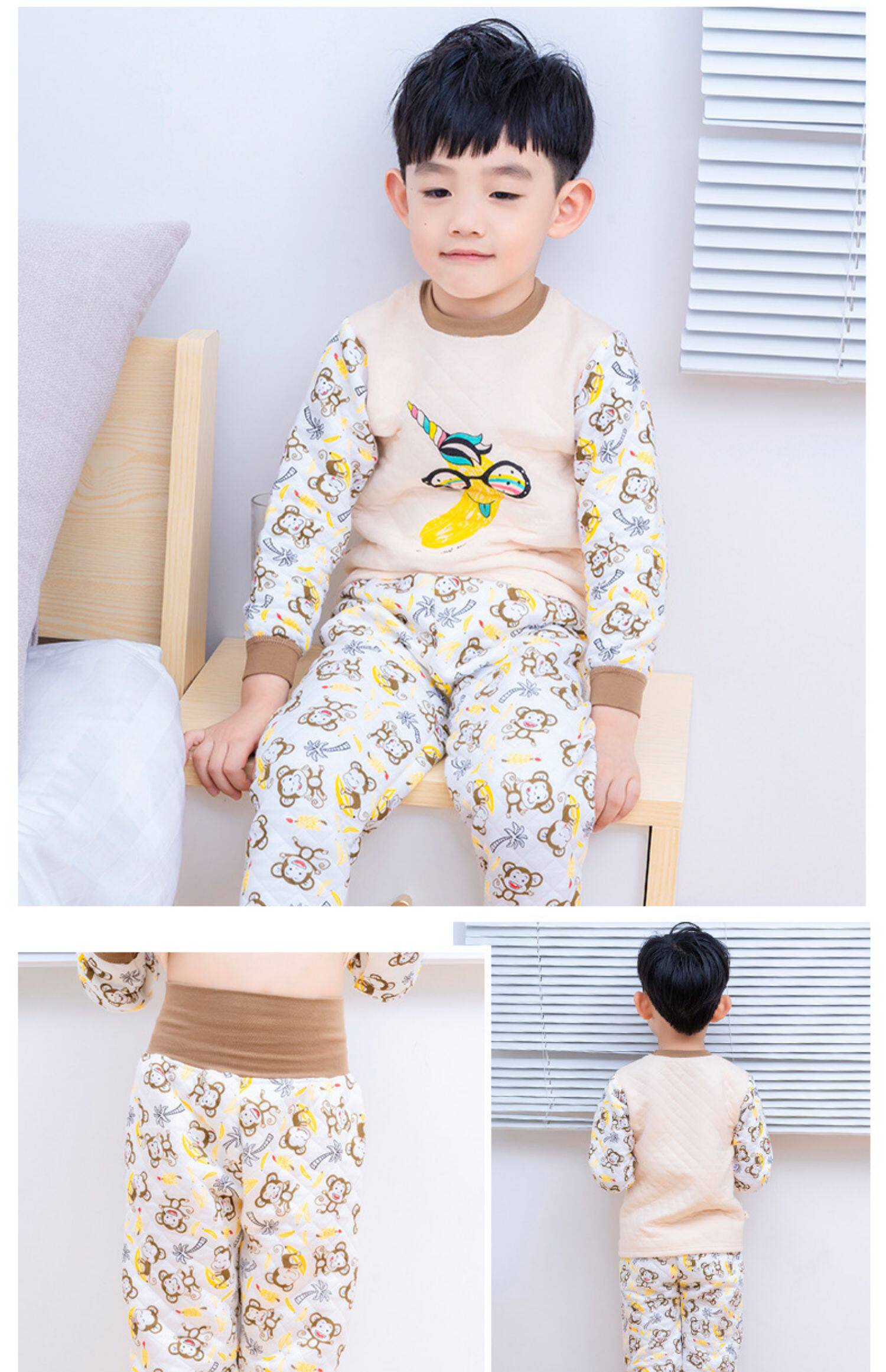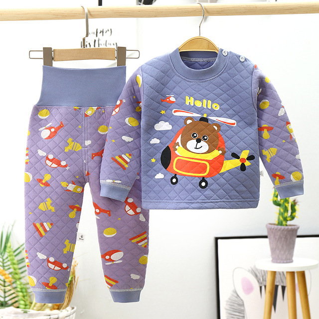 Детское удерживающее тепло нижнее белье для раннего возраста, бандаж пупочный, детский комплект для мальчиков, термобелье, высокая талия, увеличенная толщина
