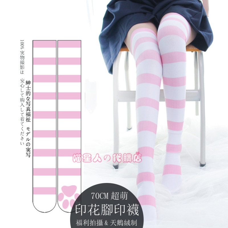 Удлиненные носки выше колена в сине-белую полоску, японский бутик, черные, шелковые, розовые, белые, большие размеры, красивые бархатные носки с кошачьими когтями