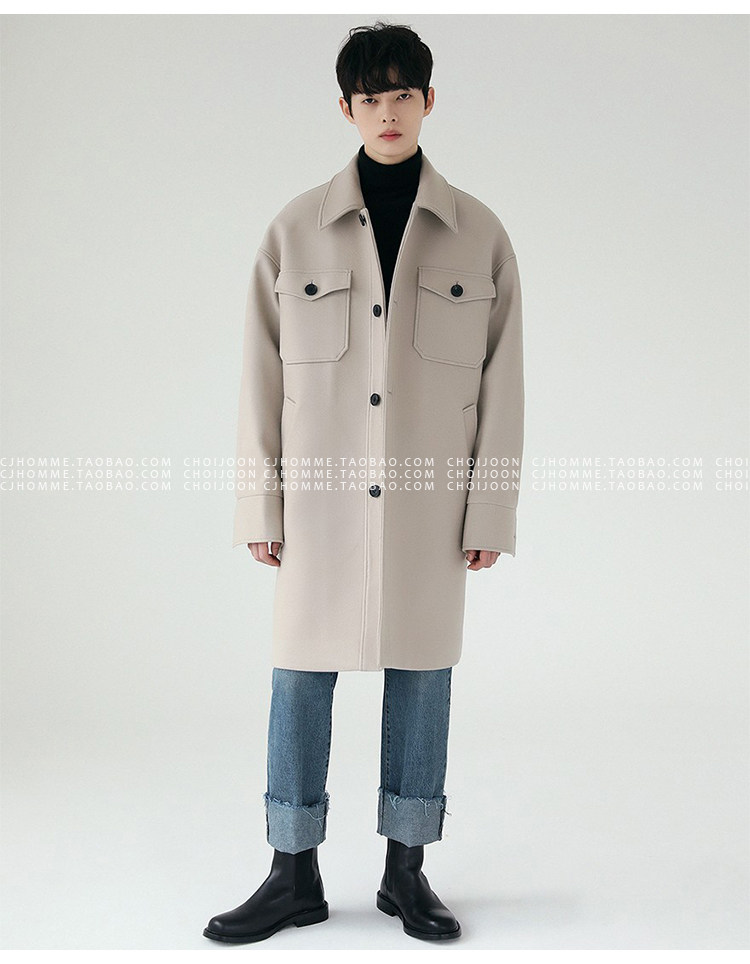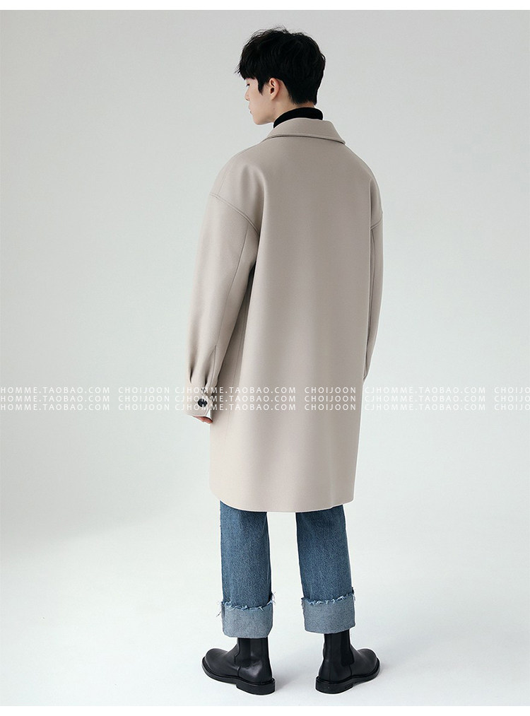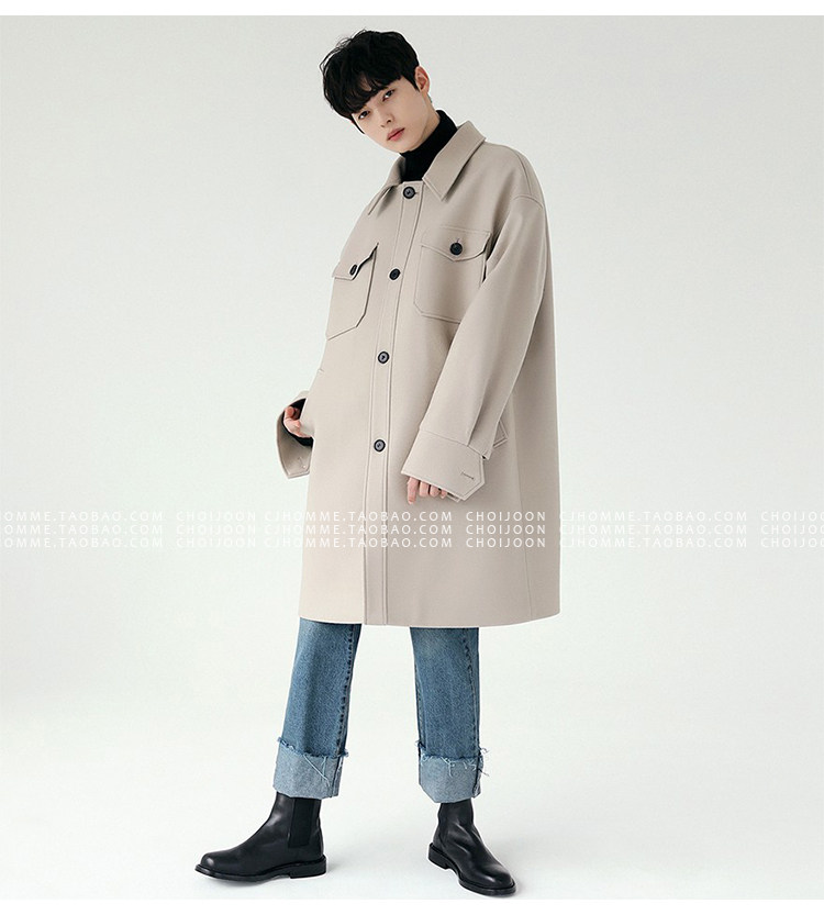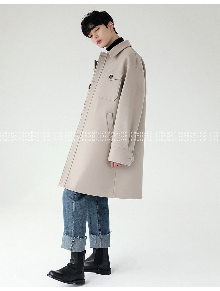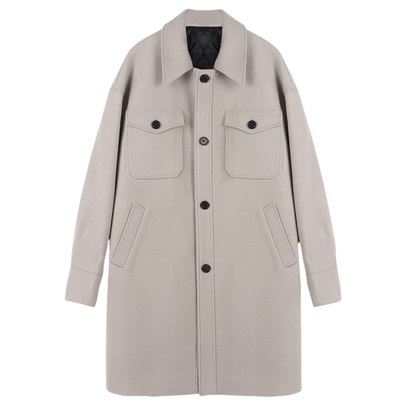 Зимнее шерстяное длинное бежевое пальто, в корейском стиле, большой размер, средней длины, свободный крой