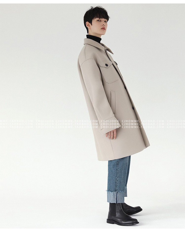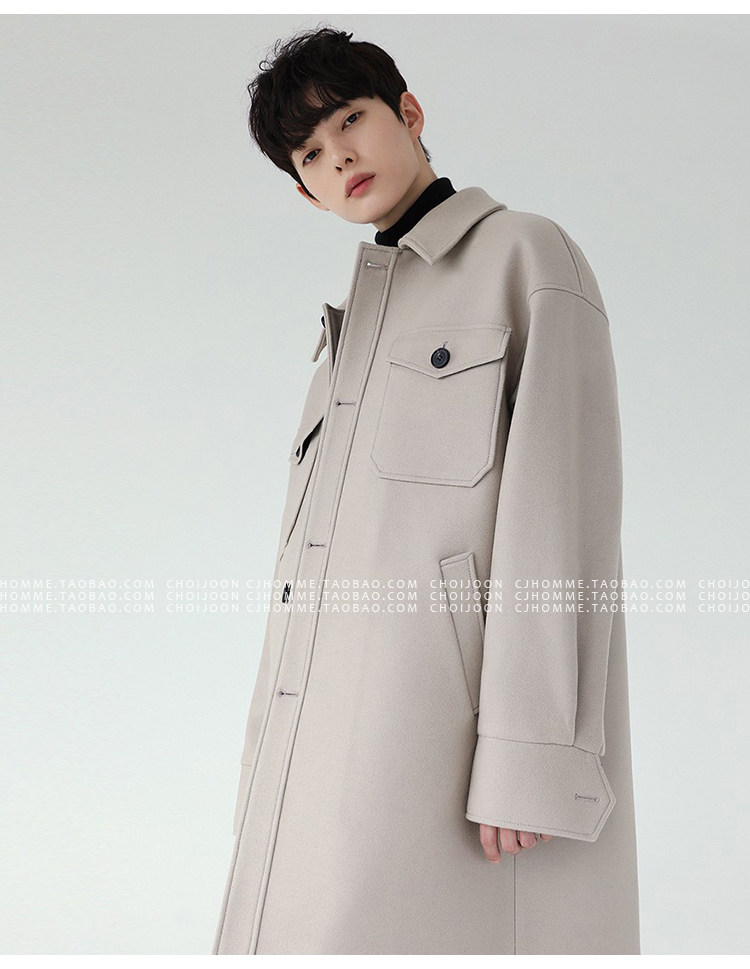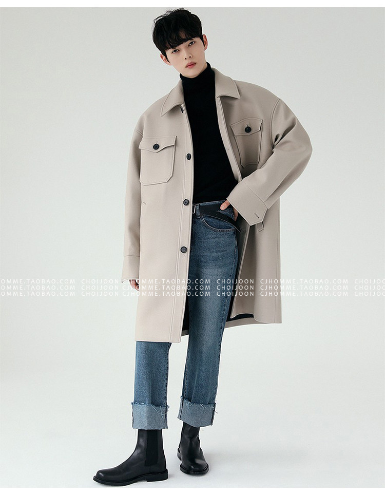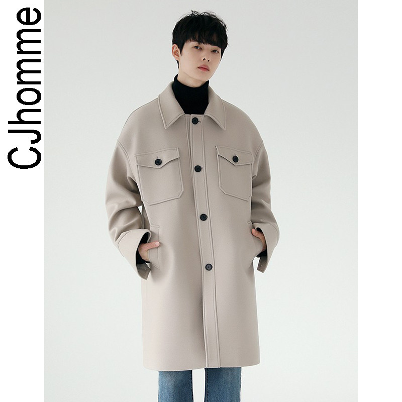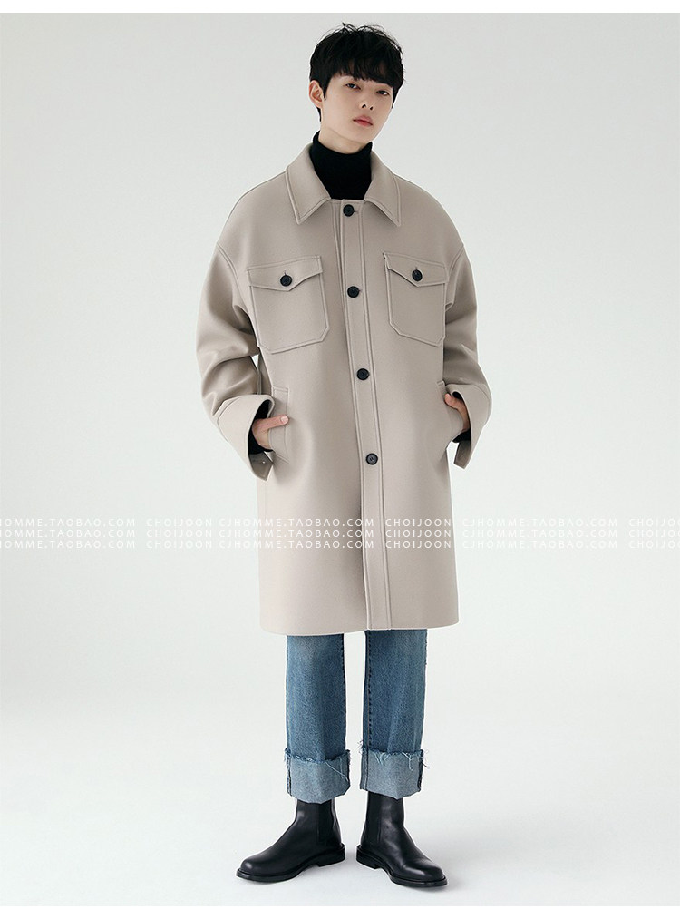 Зимнее шерстяное длинное бежевое пальто, в корейском стиле, большой размер, средней длины, свободный крой