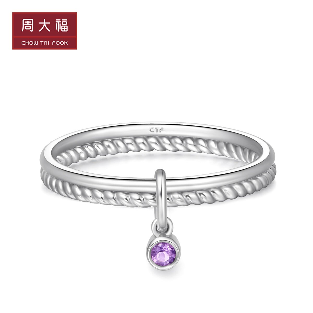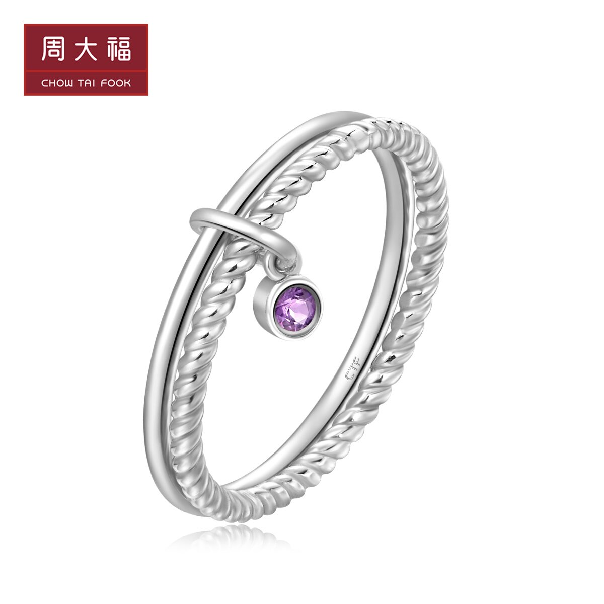 周大福 Вместительное и большое кольцо с камнем, серебро 925 пробы