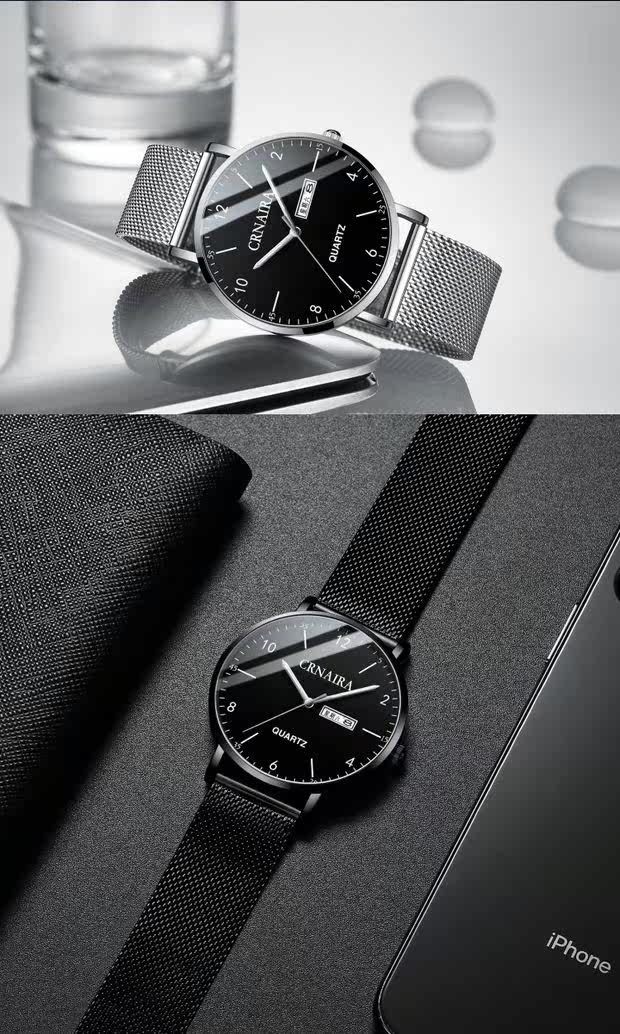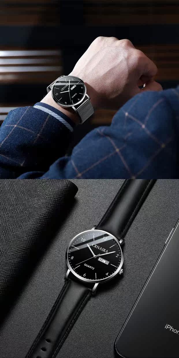 Ультратонкие водонепроницаемые модные швейцарские часы, трендовые кварцевые часы, простой и элегантный дизайн, полностью автоматический