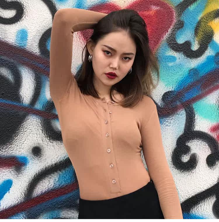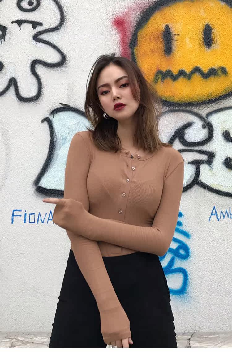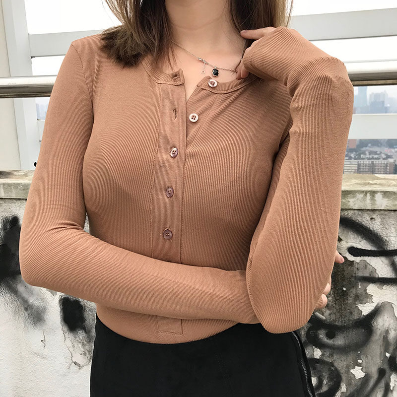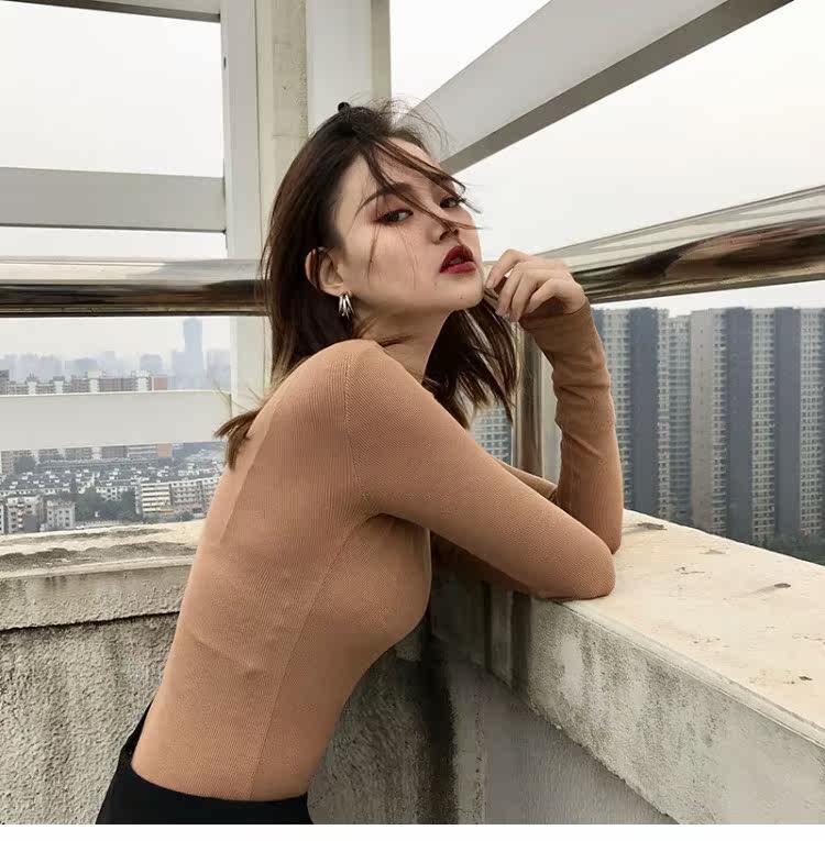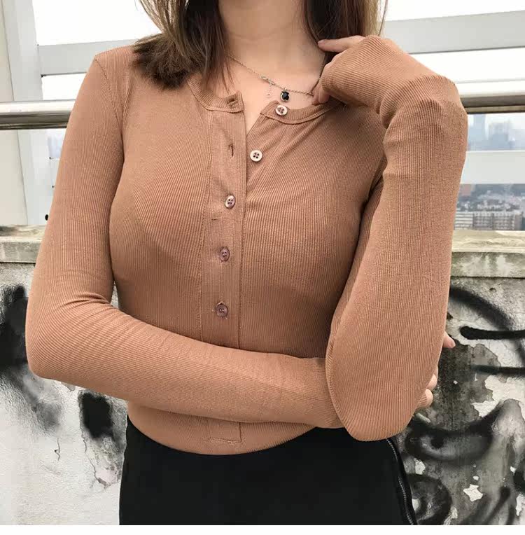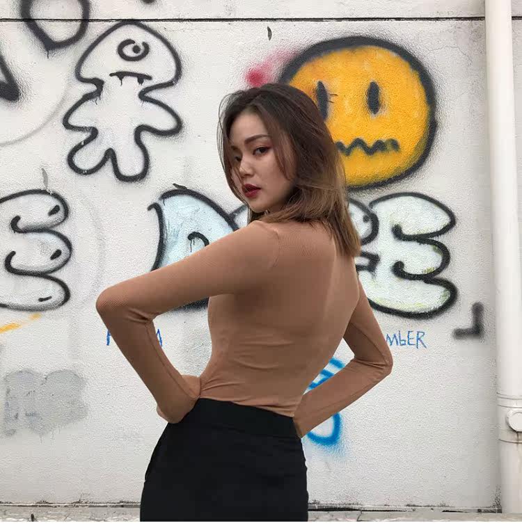 Эластичный приталенный черный лонгслив с круглым воротником, приятная телу футболка