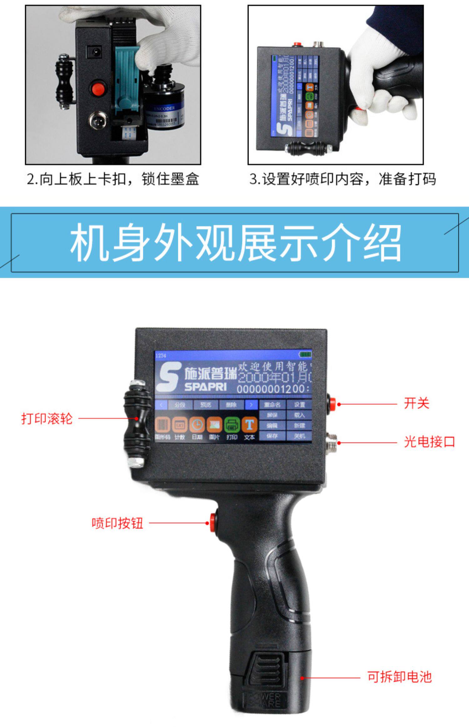[终身修施派普瑞SP200蛑悄芘缏膪 生产日期条形维码 手质小型全自獯蚵膪流水线油墨喷码]