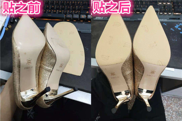 Кожаная дно кожаная обувь высокая каблука обработка ладонь.