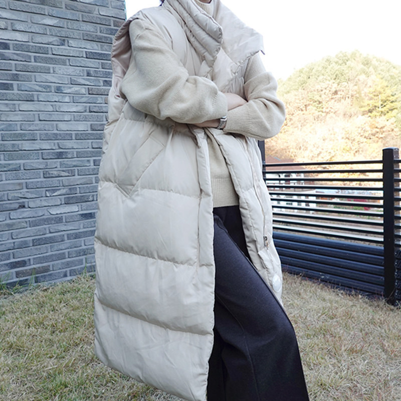 Длинный жилет с пухом, плащ, набивка пером, увеличенная толщина, свободный крой, оверсайз, большой размер