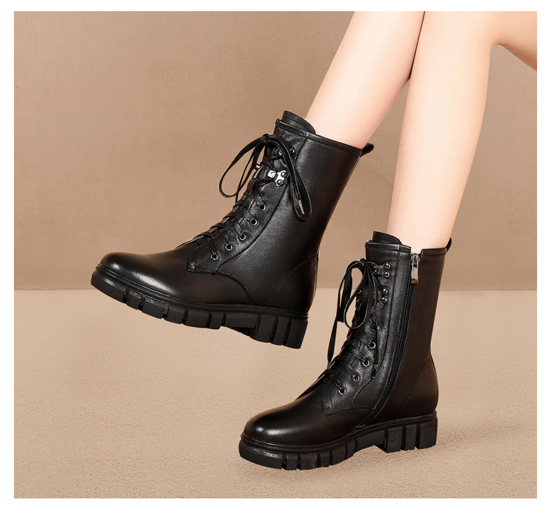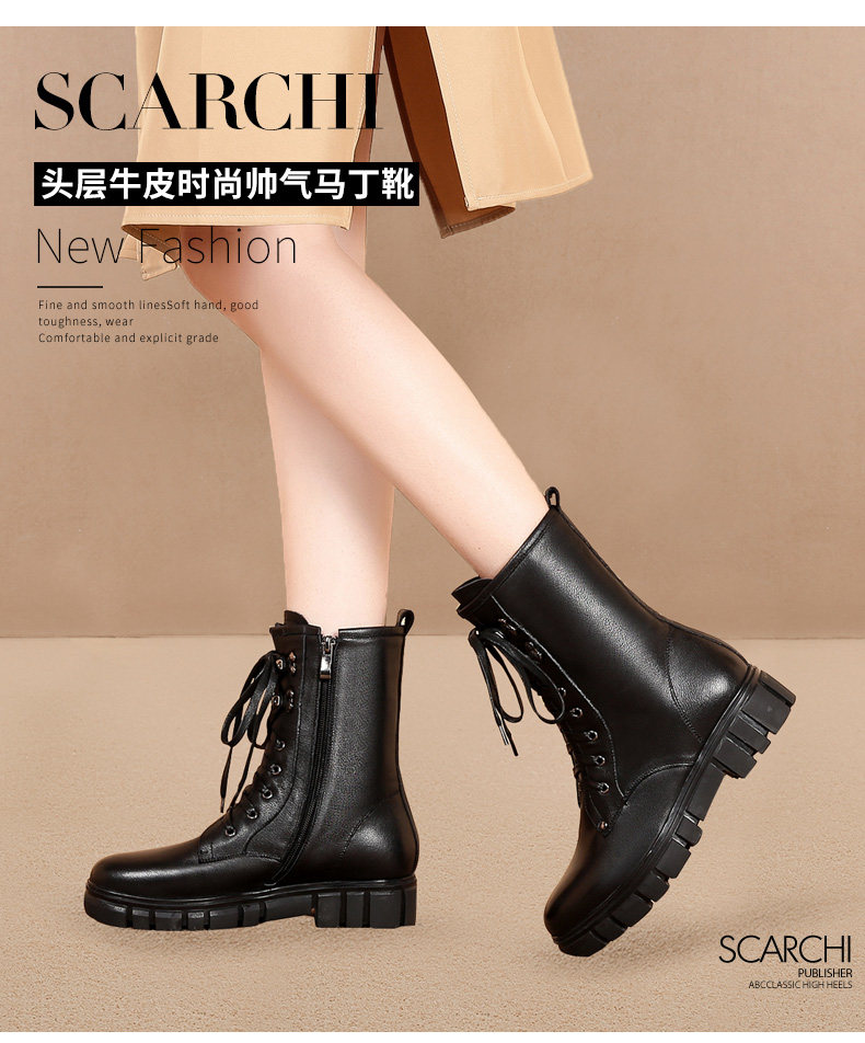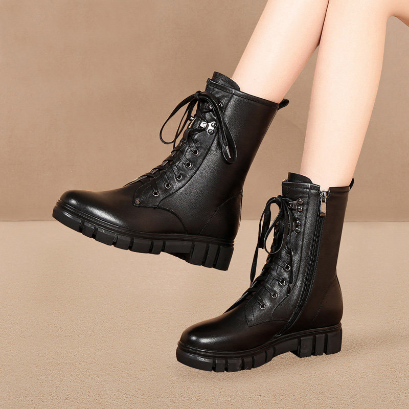 Martens, черные кожаные сапоги, средней длины, воловья кожа, коллекция 2023, большой размер
