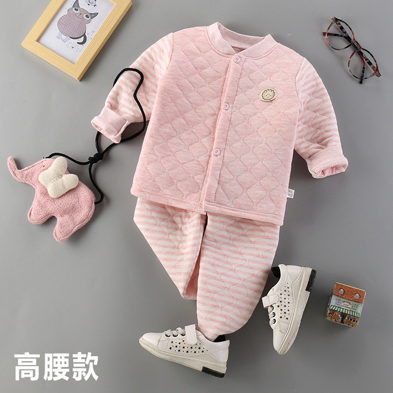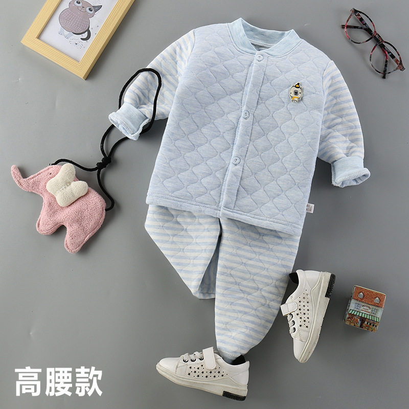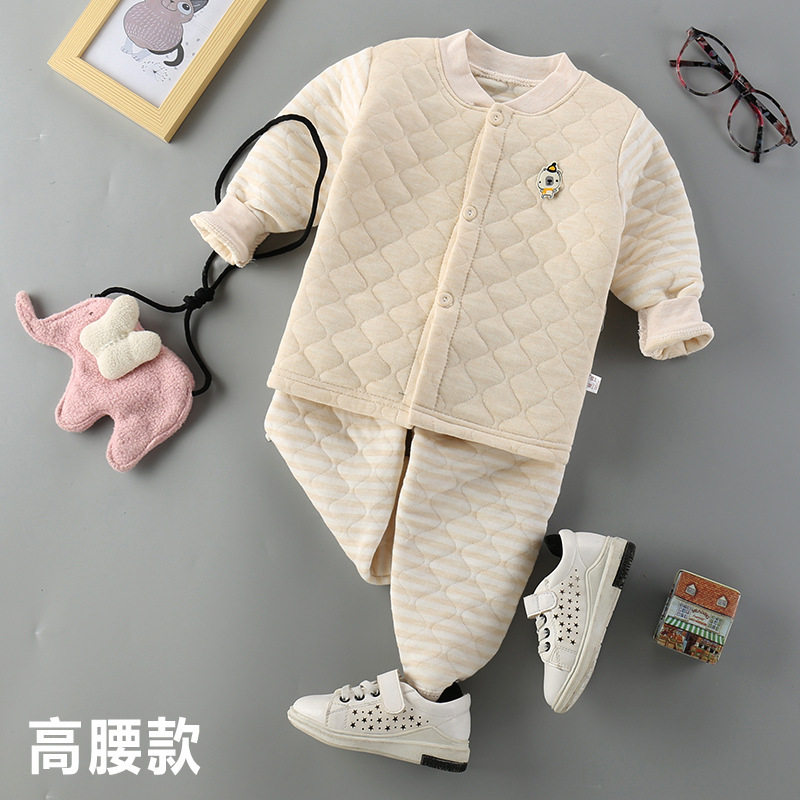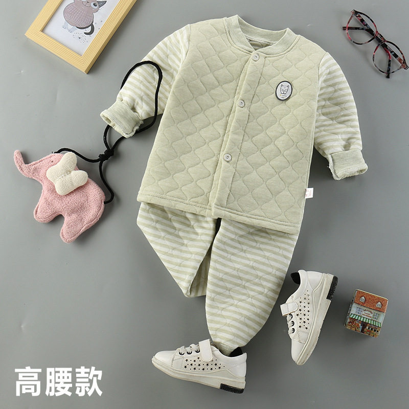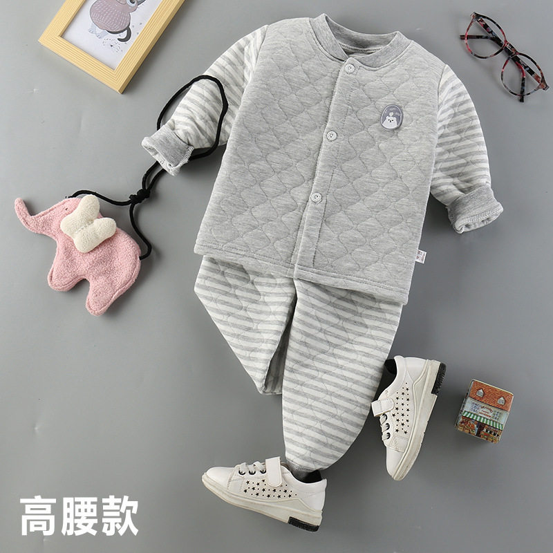 Детское хлопковое стеганое нижнее белье, удерживающий тепло бандаж пупочный, детские штаны, базовый комплект, увеличенная толщина, высокая талия