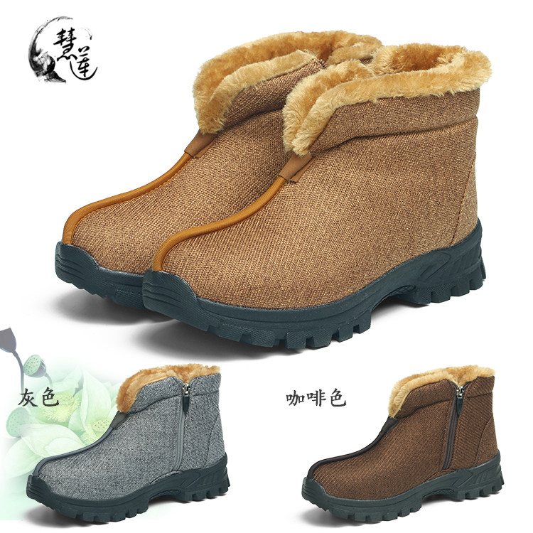 紫忧花 Теплые туфли-монки, зимние туфли-монки из хлопка, мужские и женские туфли-монки, а также бархатные нескользящие туфли-монки.
