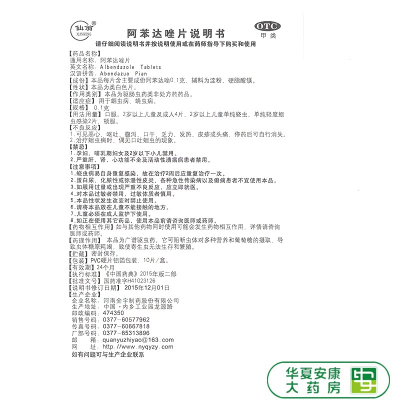 仙翁 Таблетки Alteridazole 0,1 г*10 таблетки для болезни ленточной червей Hon HX HX