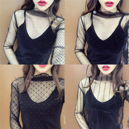 Базовый приятный телу демисезонный кружевной шелковый лонгслив, коллекция 2021, высокий воротник, в корейском стиле