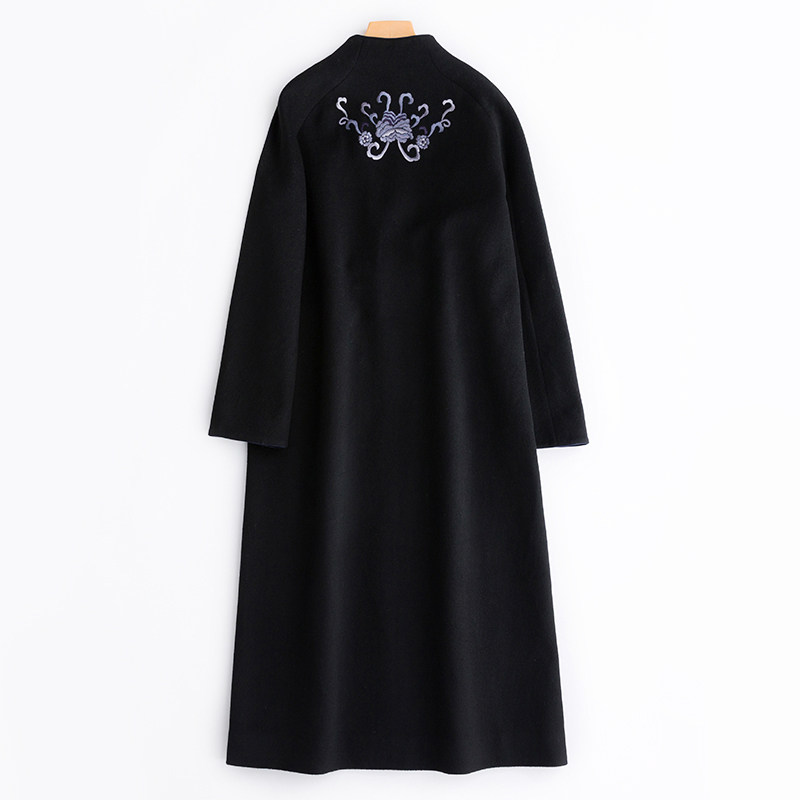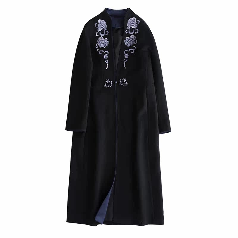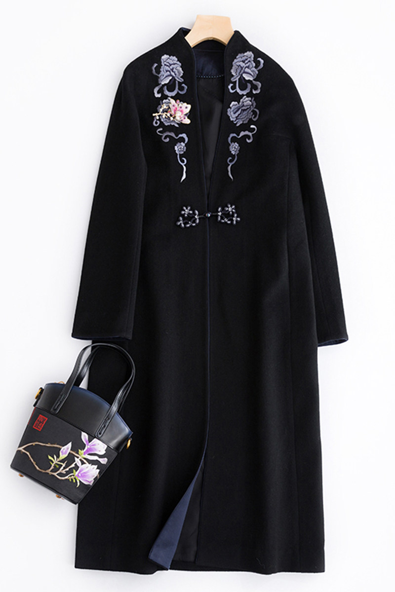 Демисезонное шерстяное кашемировое пальто, с вышивкой