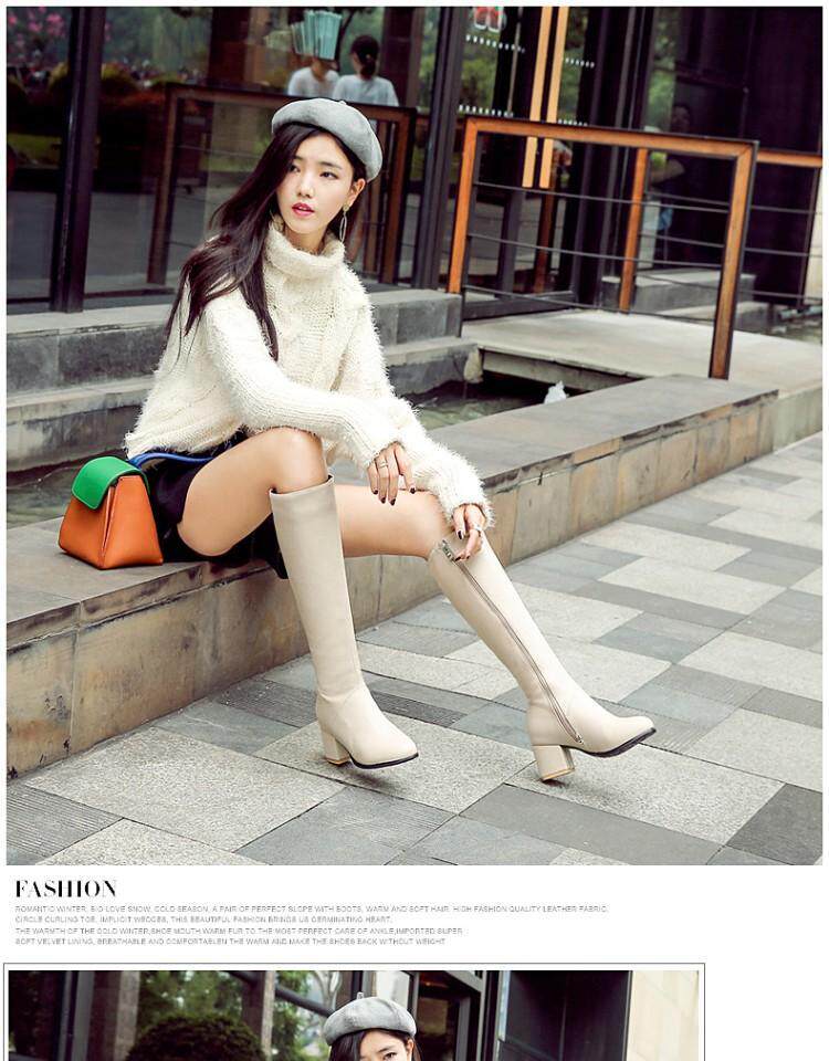 Высокие сапоги, флисовые зимние демисезонные черные бежевые ботинки для школьников и студентов