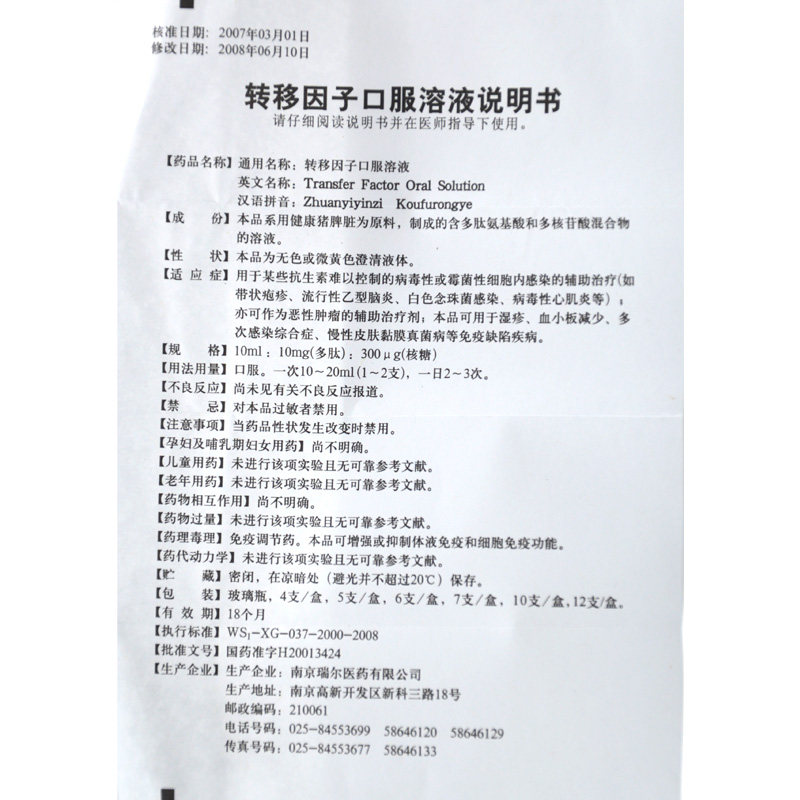 瑞尔 Перенесите коэффициент перорального решения 10 мл*6 Поддержка/коробка