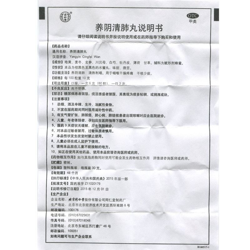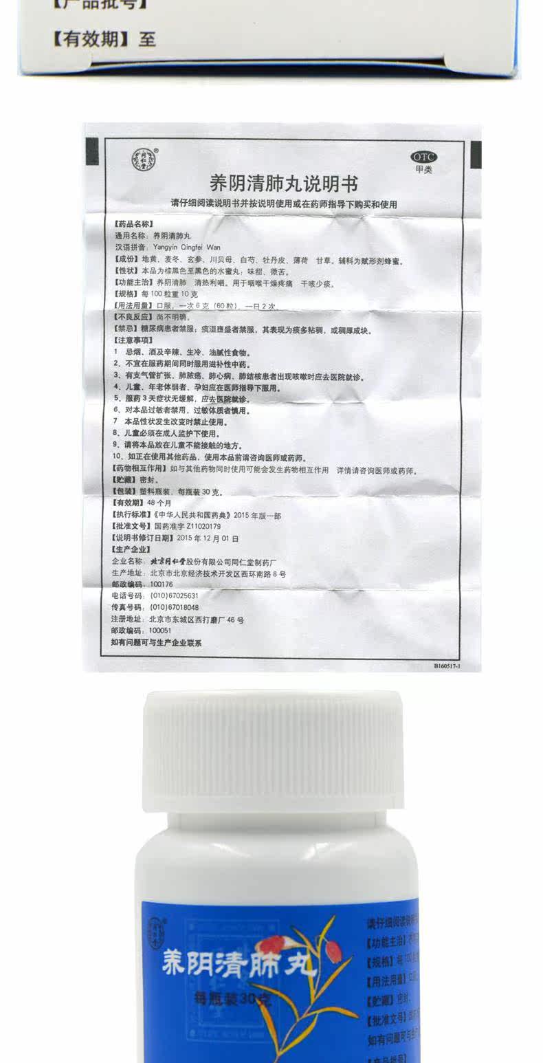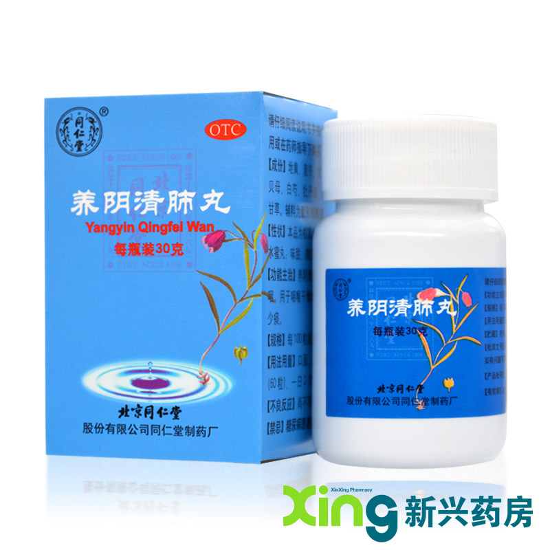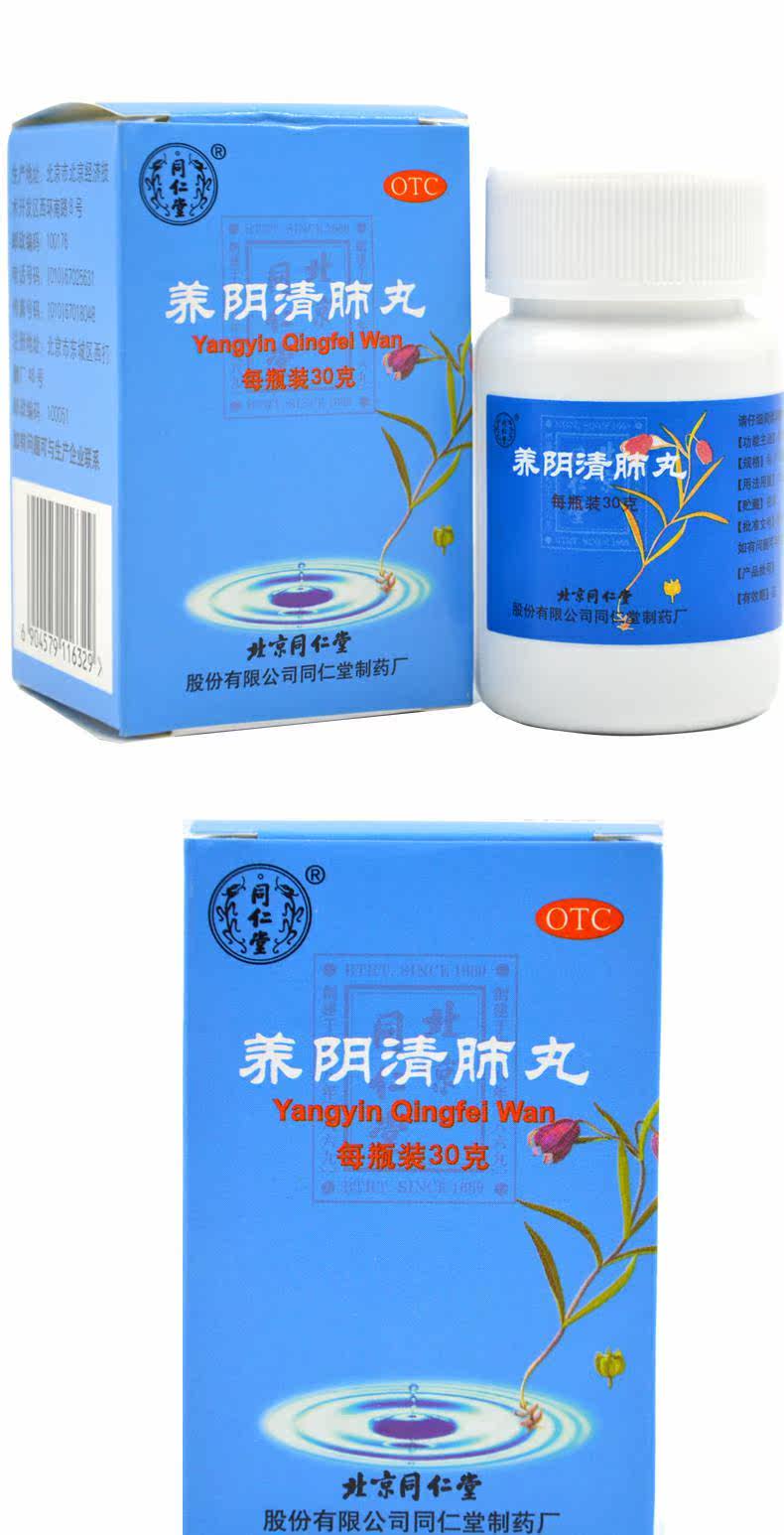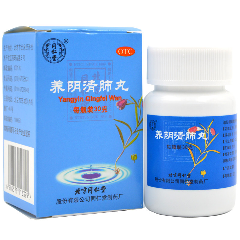 同仁堂 Таблетки Yangyin Qingfei 30 г/коробка от боли в горле, сухого кашля, уменьшения мокроты, убирают жар и успокаивают горло.