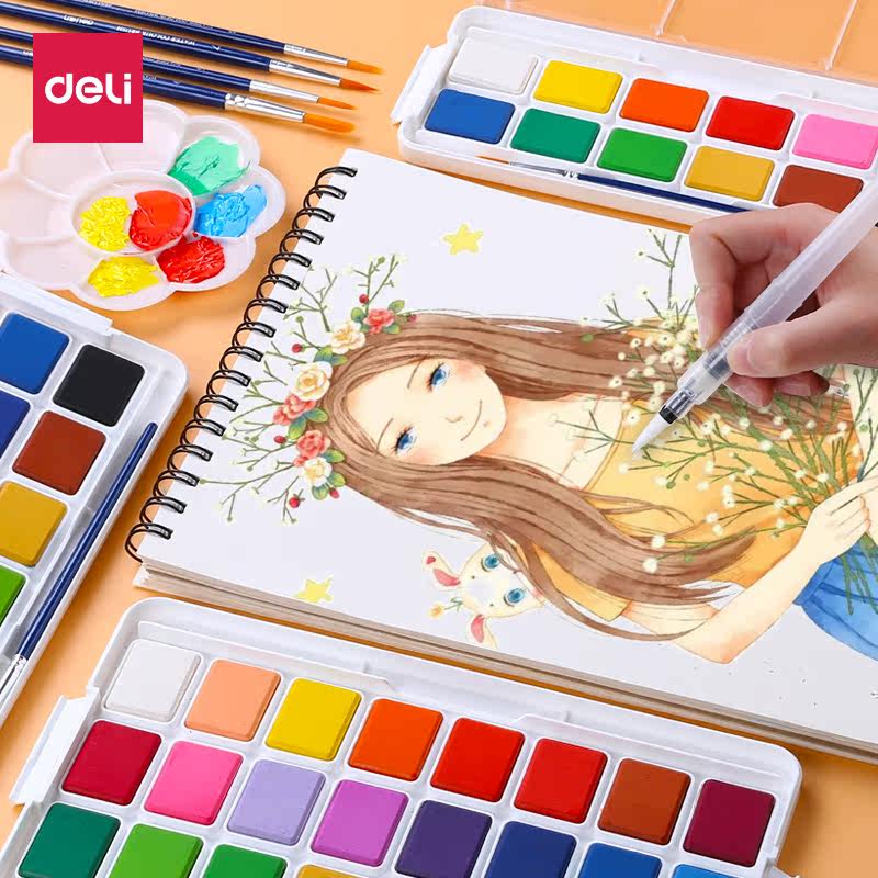 Пигментированная акварель для начинающих, детская пудра для школьников, нетоксичная гуашь, художественный детский комплект, 24 цветов, ручная роспись, можно стирать, граффити