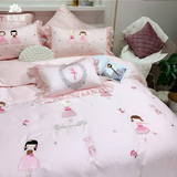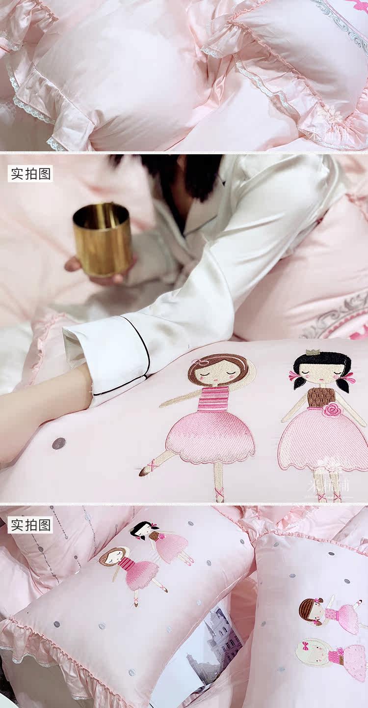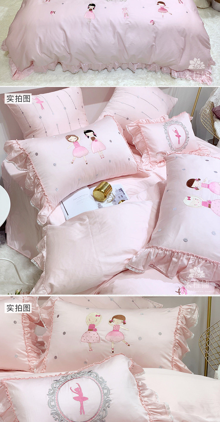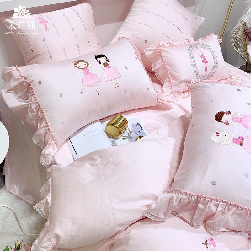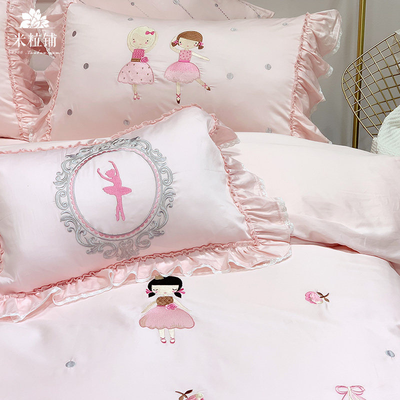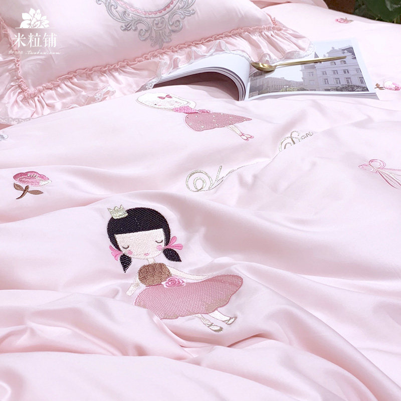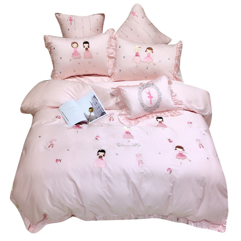 Розовый элитный хлопковый мультяшный комплект, покрывало, с вышивкой, 4 предмета, 60 шт