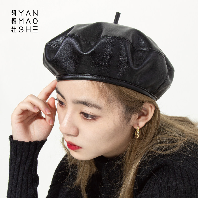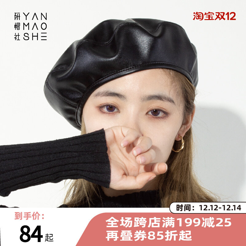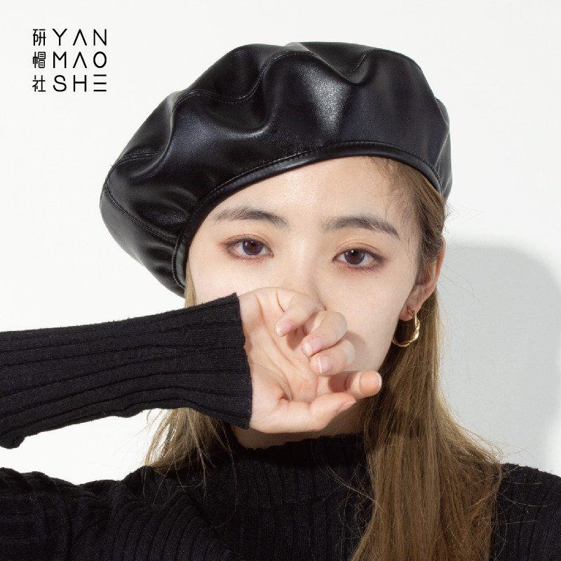 研帽社 Демисезонный полиуретановый модный берет, маленькая шапка