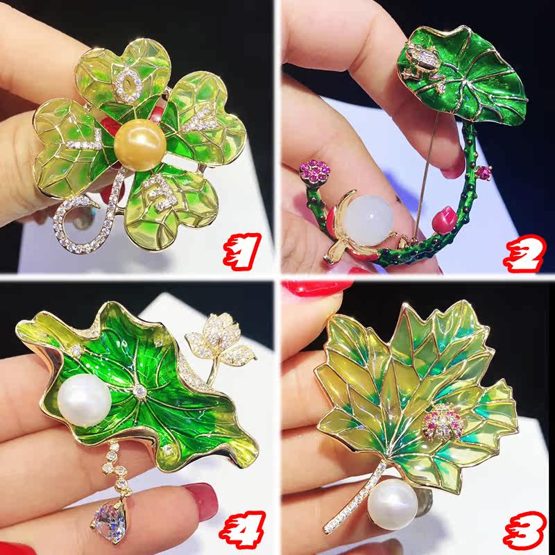 Натуральный пресноводный жемчуг, лист лотоса, четырехлистный клевер, шелковый шарф, брошь с пряжкой, женский простой корсаж, аксессуары, распродажа