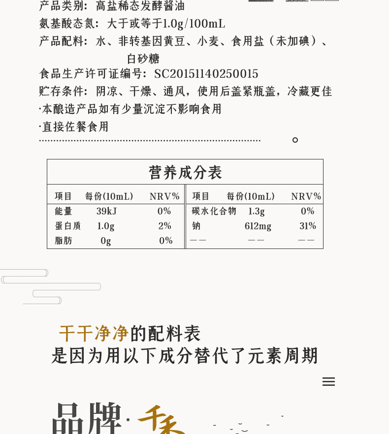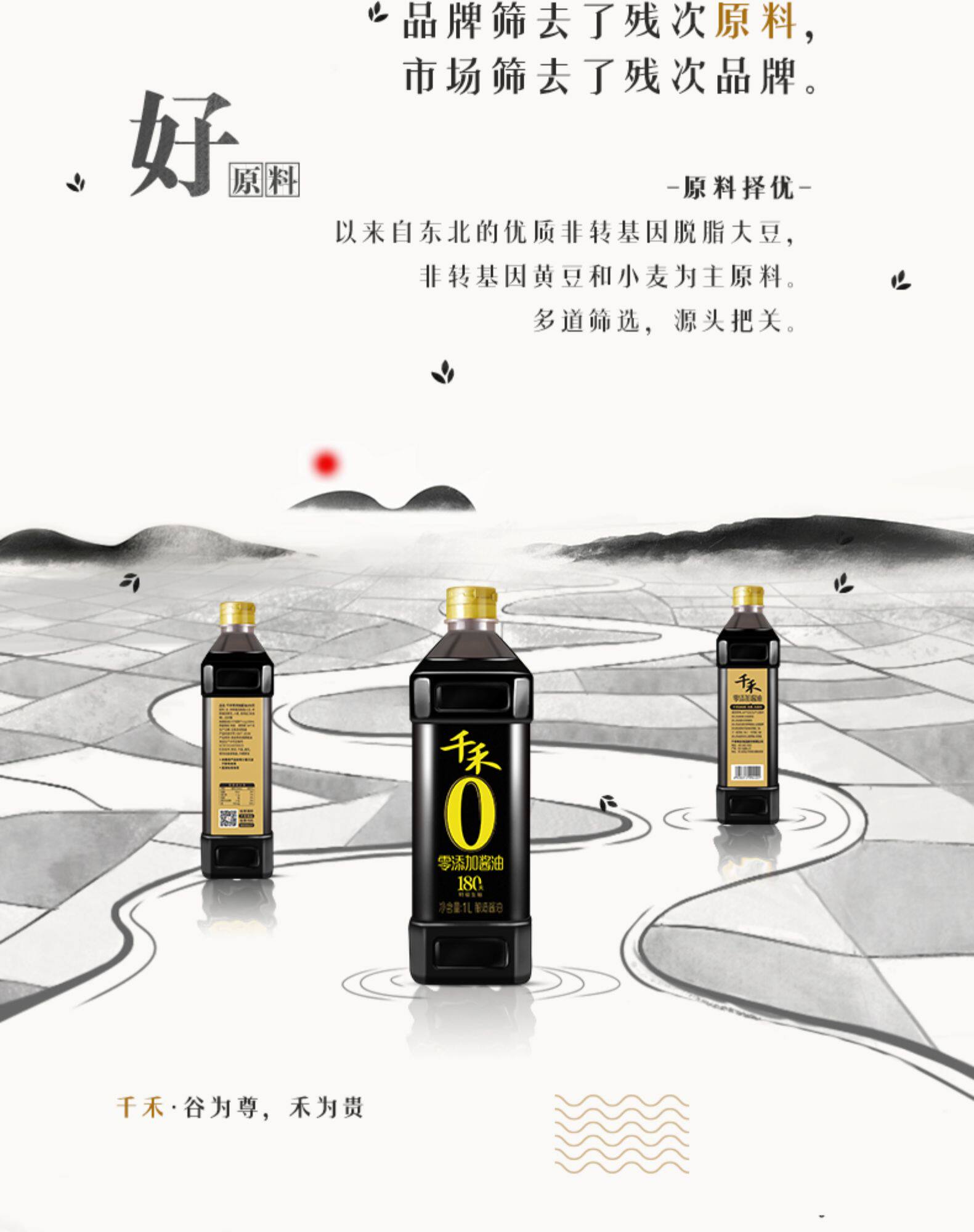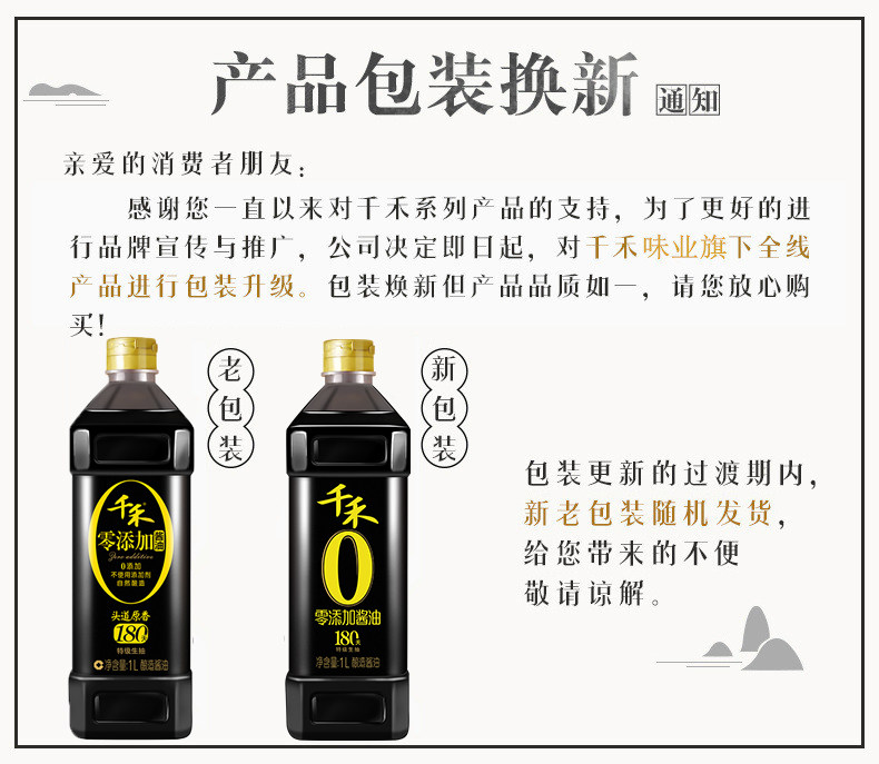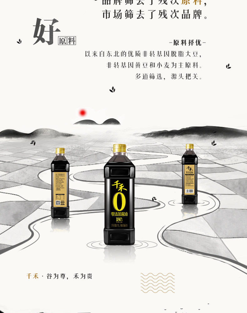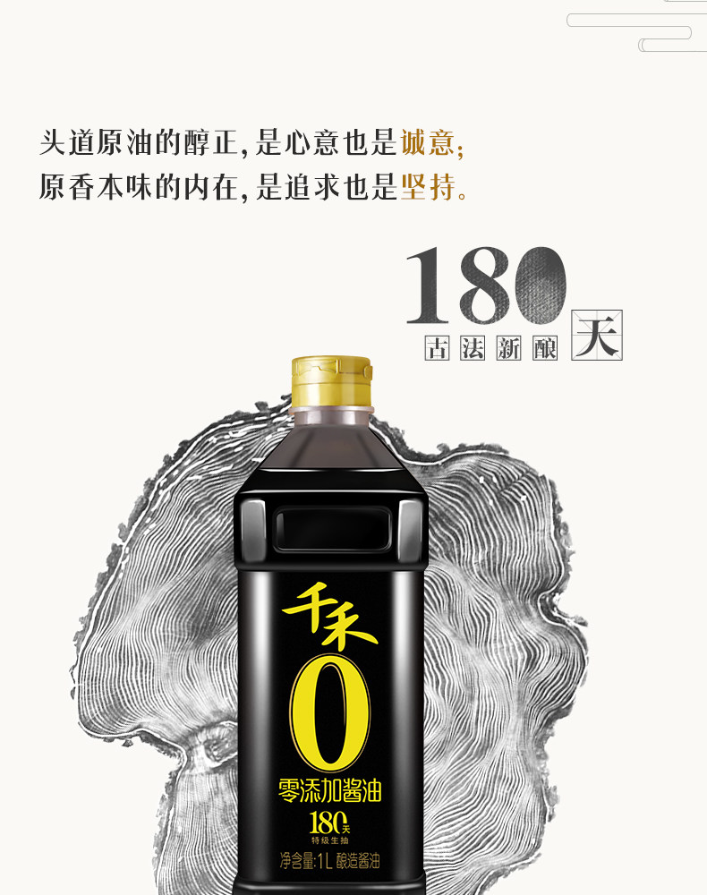 千禾 Ноль -добавленный соевый соус Headway Оригинальный ладан 180 дней 1 л без MSG Специальное сырое соевое соус приправлен