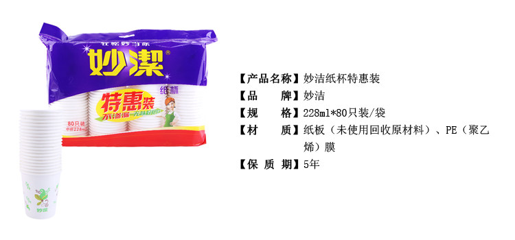 Бумажные стаканчики Miaojie Special Pack 228мл 80 шт.