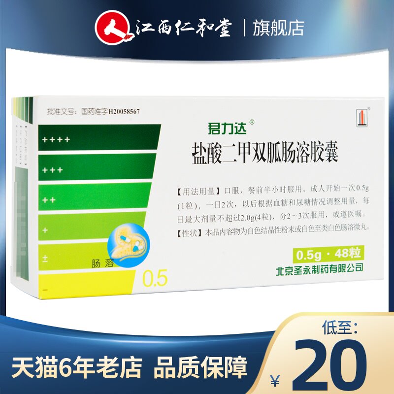Всего за 20 юаней] Junlida Junlida Метформин гидрохлорид, капсулы с кишечнорастворимой оболочкой, 0,5 г * 48 капсул в коробке для снижения уровня сахара в крови и диабета