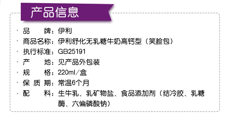 Молоко Yilishuhua безлактозное с высоким содержанием кальция, 220мл/коробка