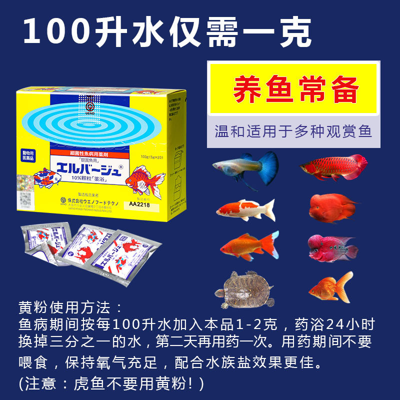 Подлинный японский желтый порошок ueno гриб -гриб тропические рыбы золотые рыбы гнилые плавники белая точка белая точка кои -медицина продвижение рыбного медицины
