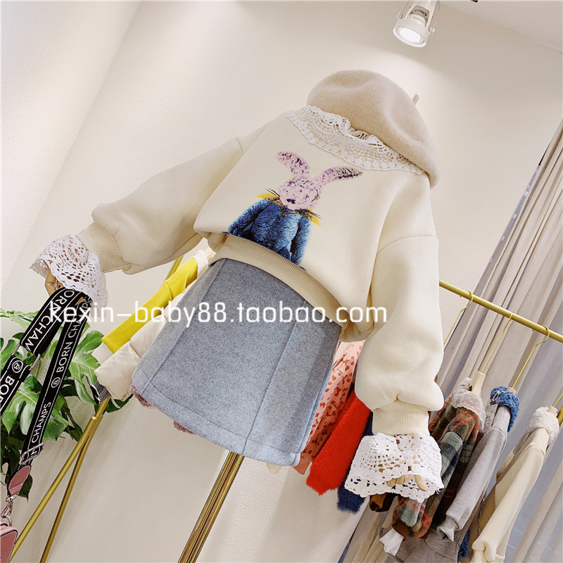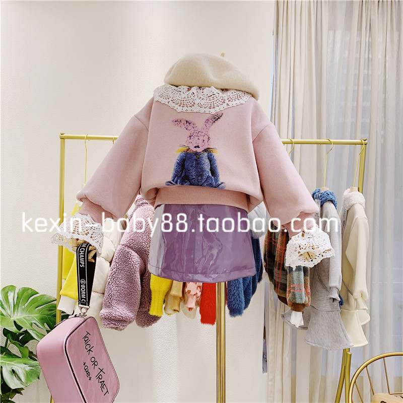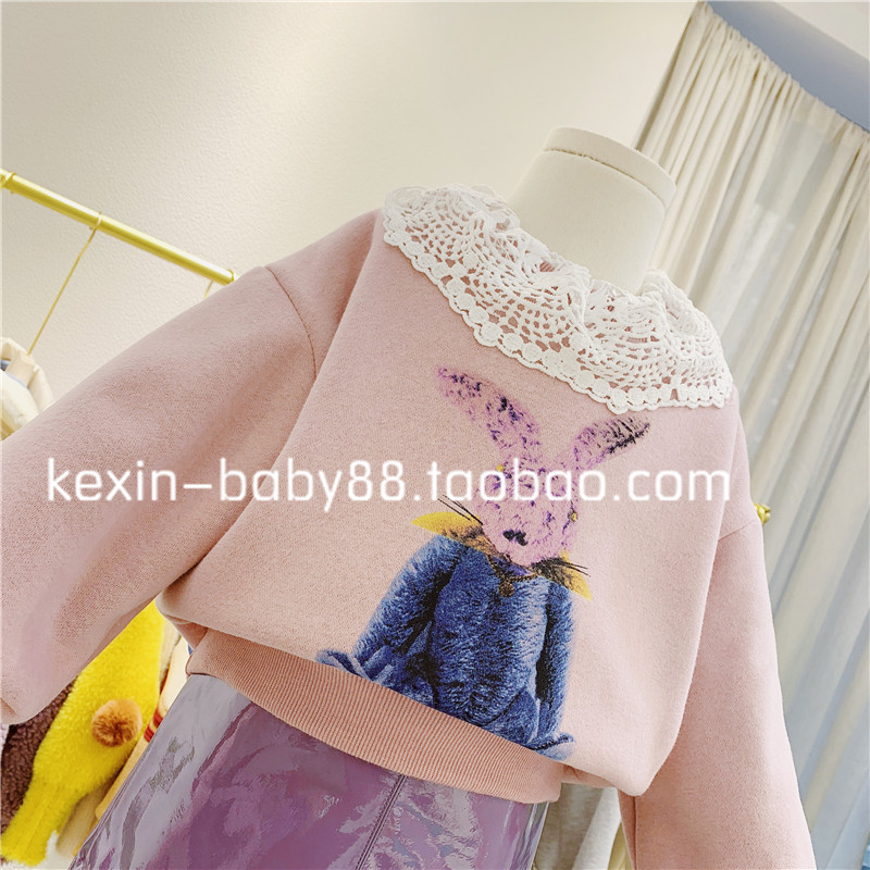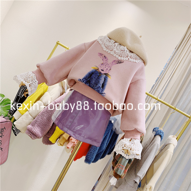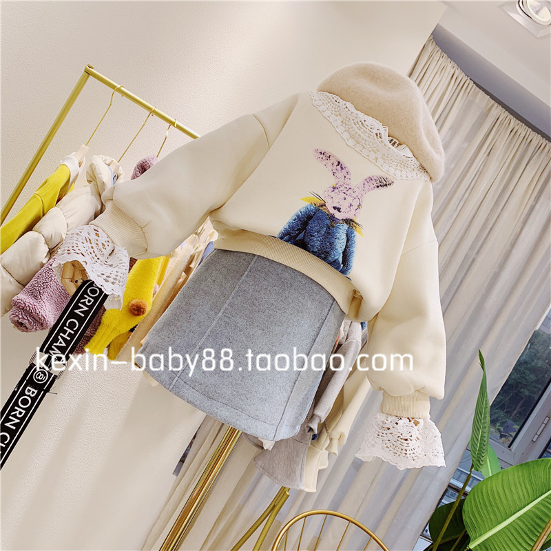 Зимний милый кружевной кролик, утепленная толстовка, детская одежда