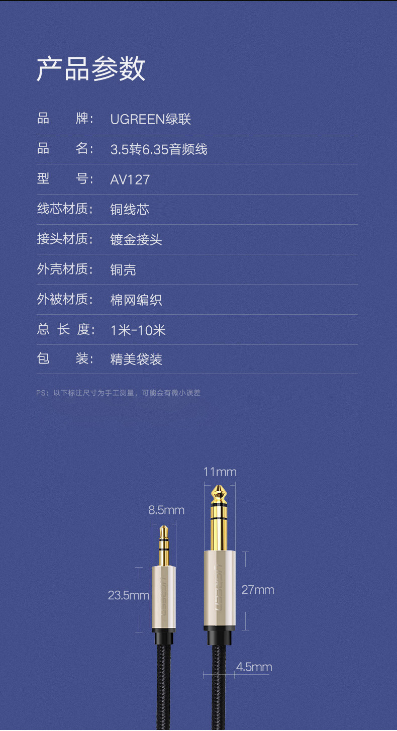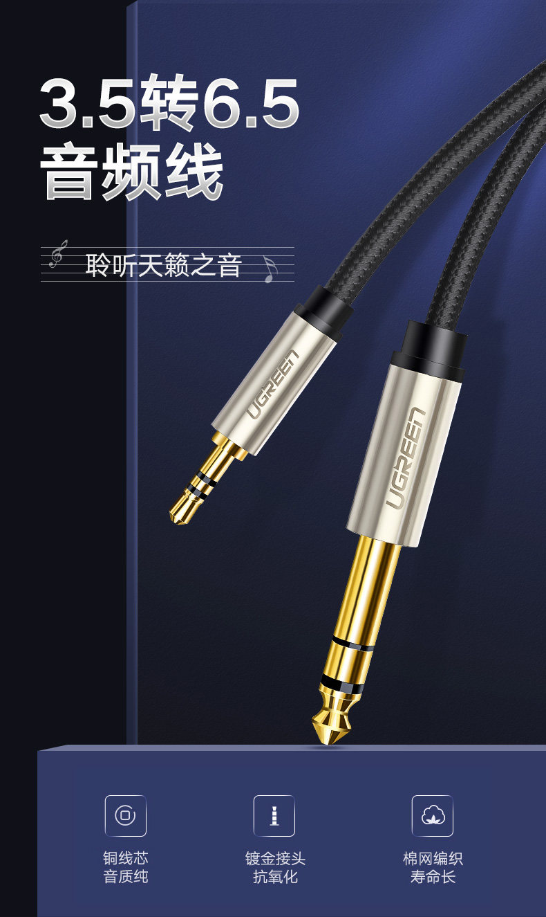 绿联 Мобильный телефон, ноутбук, колонки, микрофон, синтезатор, гитара, кабель-переходник, 6.5мм