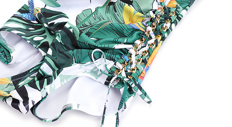 | 1. Соединенные женские купальники, столкнувшись с талией и животом, модифицируют маленький живот; 2. Боковой шов с цепным перекрестным дизайном веревки, детали показывают качество; 3. Треугольные плавающие стволы дизайн, сексуальный роман, визуально растягивающие линии ног. |