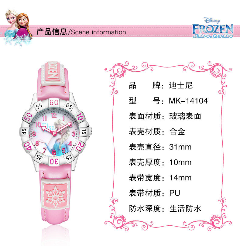 Дисней, водонепроницаемые милые детские часы для принцессы, «Холодное сердце»