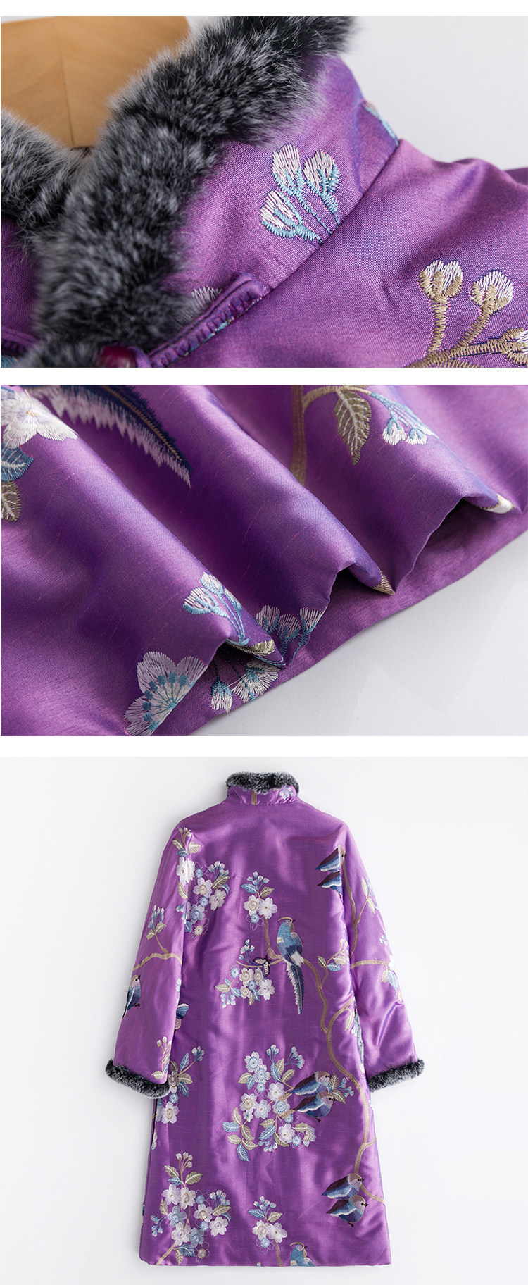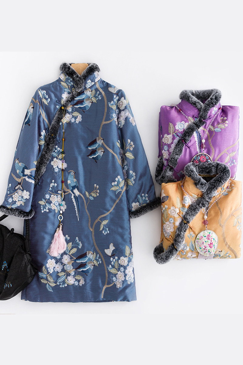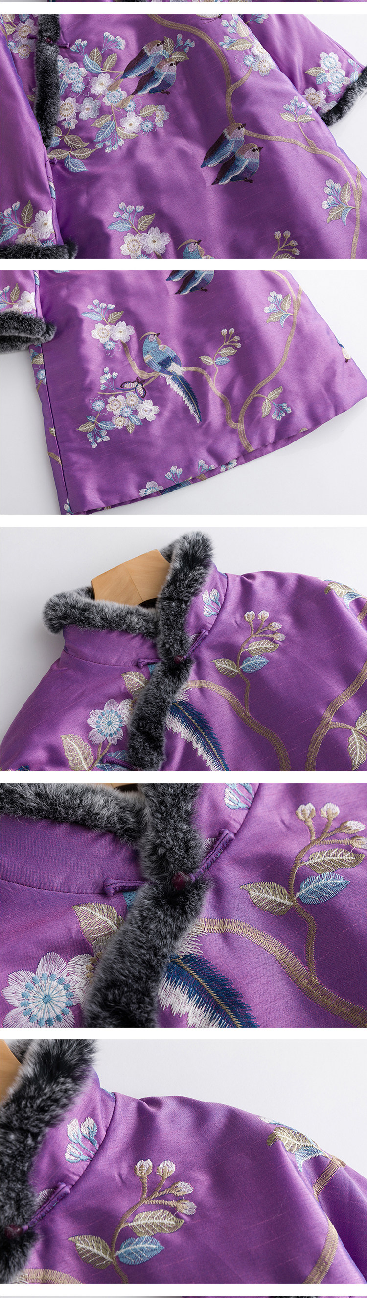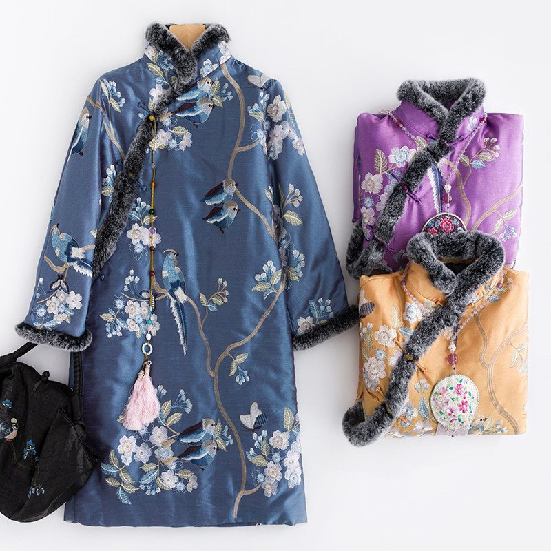 CPP172 Оригинальная цветная косой выдр кроличья кроличьи края китайская ретро -вышивка Национальная одежда для хлопковой одежды из ветряной одежды, китайская республика, женская осень и зима