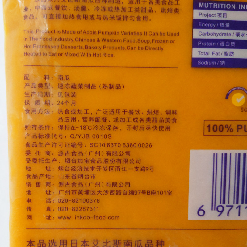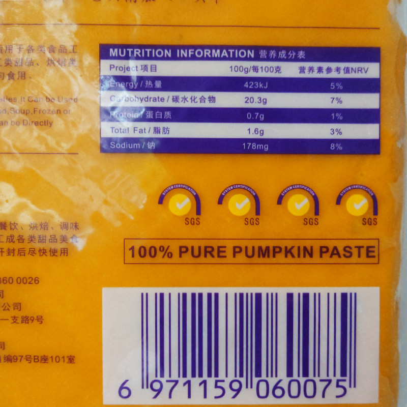 Замороженная тыква тыква с тыквой тыквы beibeigua abbis paste2kg