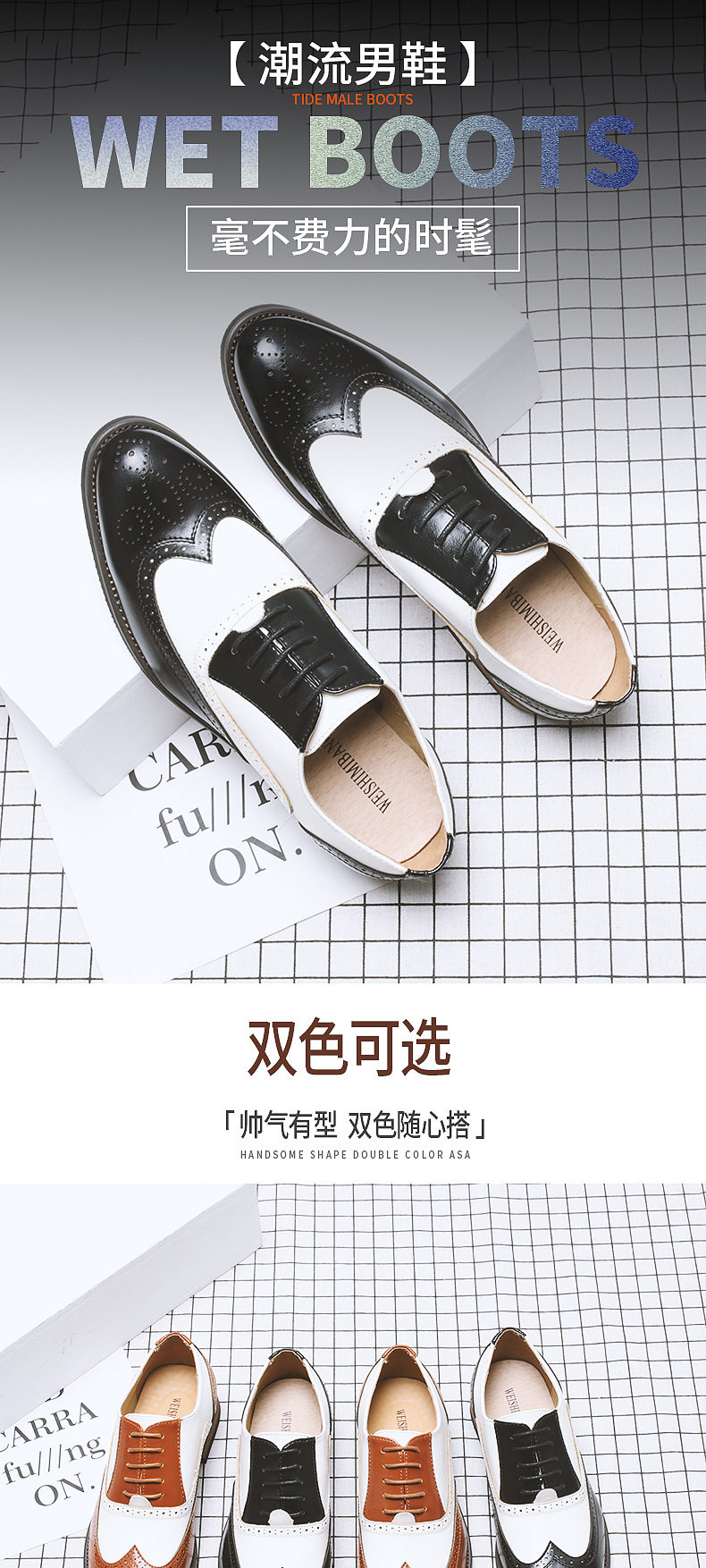 Мужские черно -белые контрастные сшивающие барокко резок