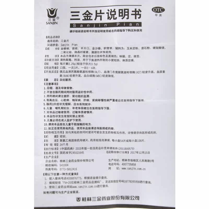 三金 54 Таблетки/Ящик, зараженные уретры воспалительными моча частоты мочи, некомпетентная гинекологическая медицина.