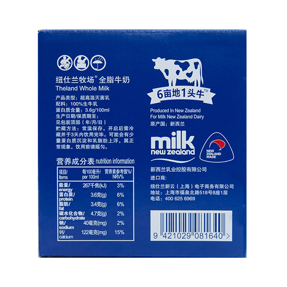 Белок Land/Neusland 3,6 г, цельное жирное молоко 250 мл*10, импортируемое в Новой Зеландии