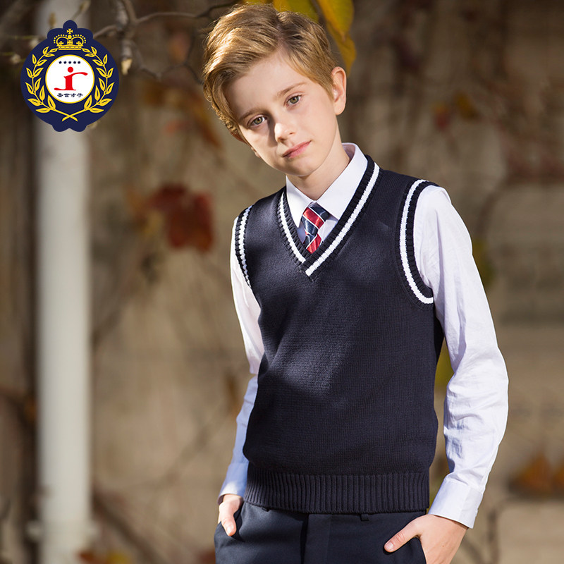 Форма для школьников и студентов, трикотажный жилет для мальчиков, свитер, осенний пуховик, V-образный вырез, подходит для подростков, в западном стиле