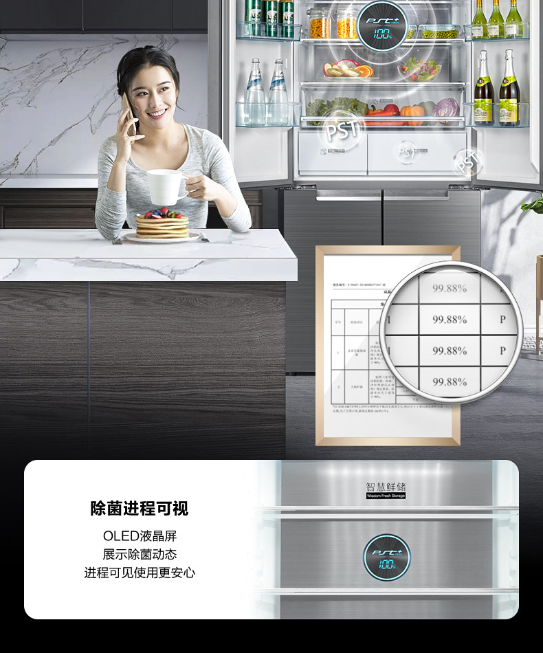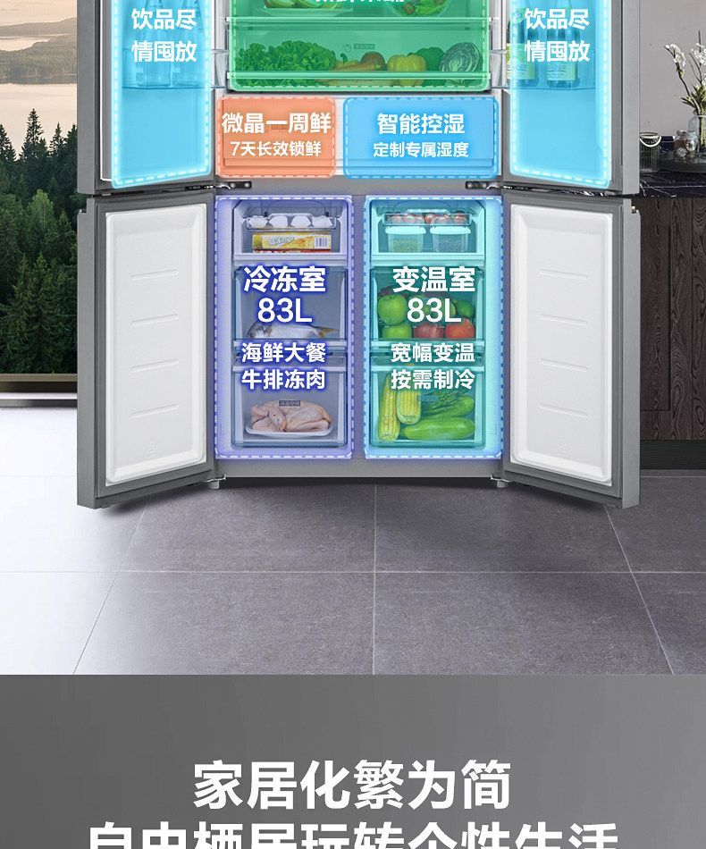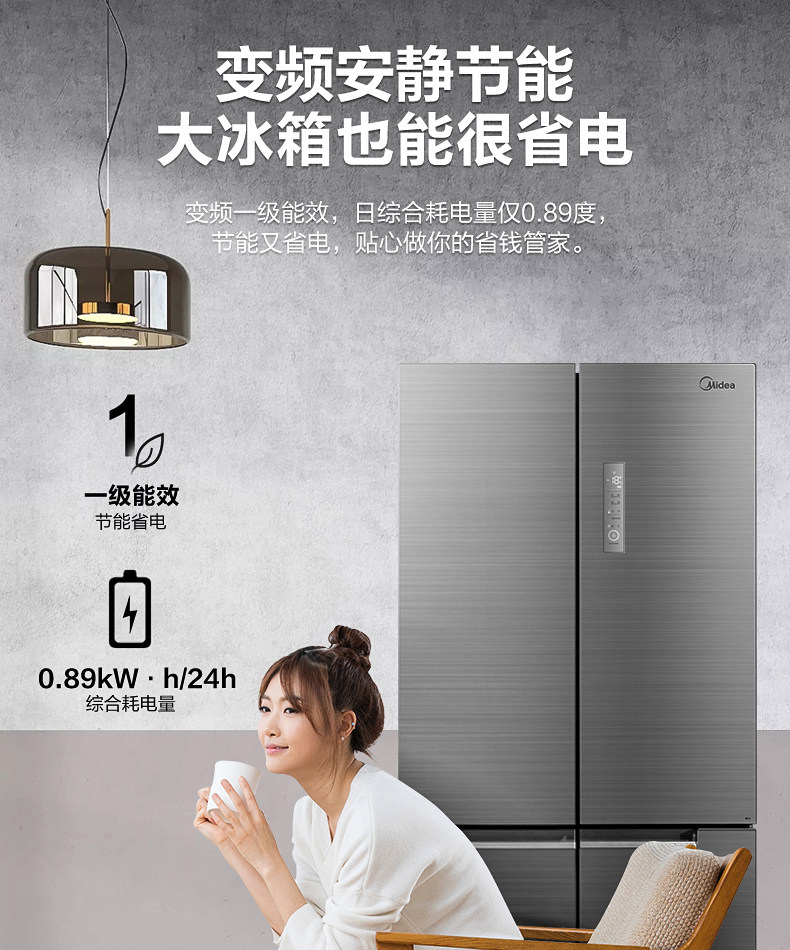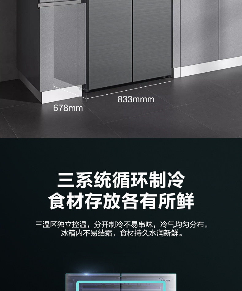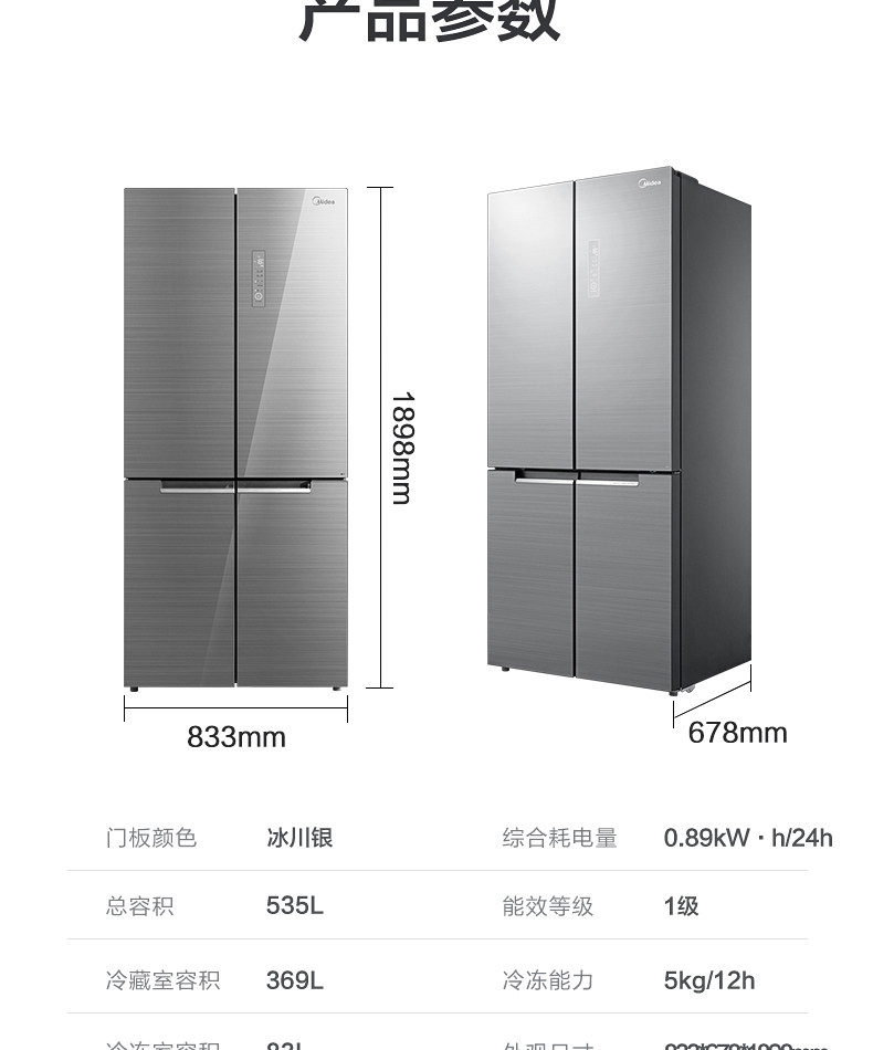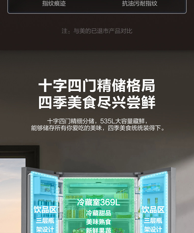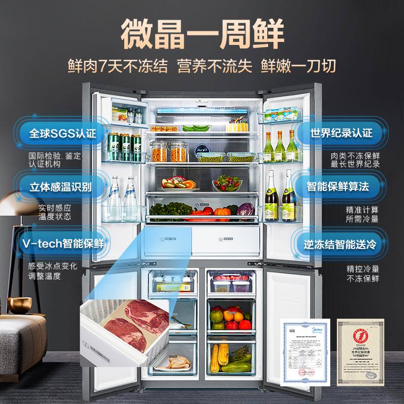 [Micro Crystal One Week Fresh] Midea 535L Cross Cross Double Открытие четыре больших холодильников с интеллектуальным домом