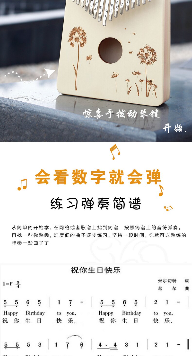 Портативный 17 тонального большого пальца пианино Калинба Калинба фортепиано прибор фиксированный пианино для начинающих пианино