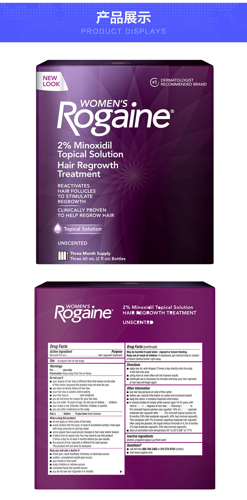 Rogaine/Rogaine миноксидил 2% линимент женский раствор против выпадения волос 2% аппликатор настойки Dier
