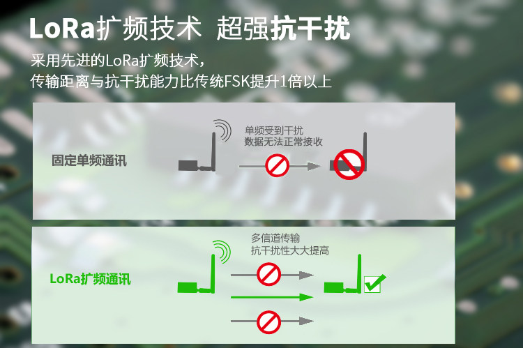 , Расстояние передачиДалеко, высокая надежность.В то же время, по сравнению с традиционной технологией модуляции, Лора&торговля; технология модификации сопротивляется
