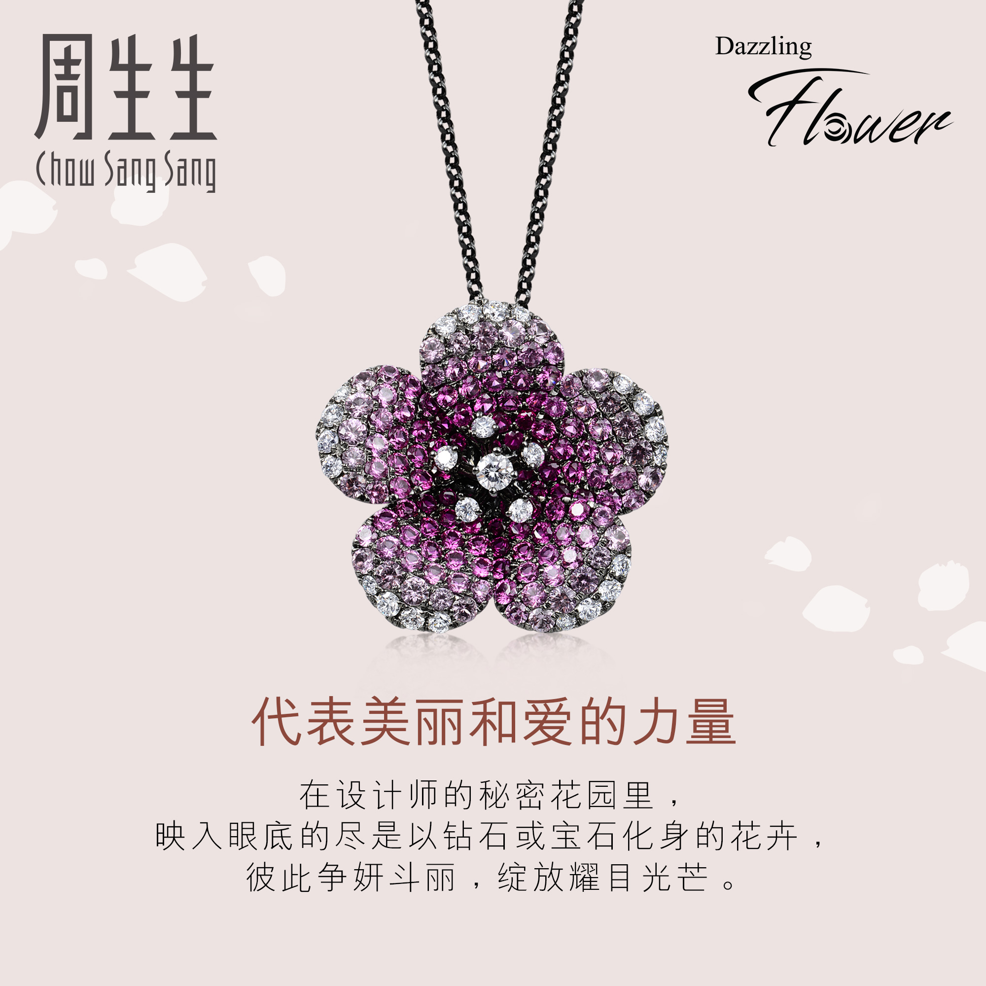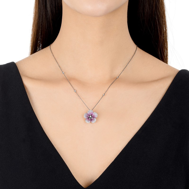 周生生 Черная золотая красная сапфировая бриллиантовая подвеска, 18 карат