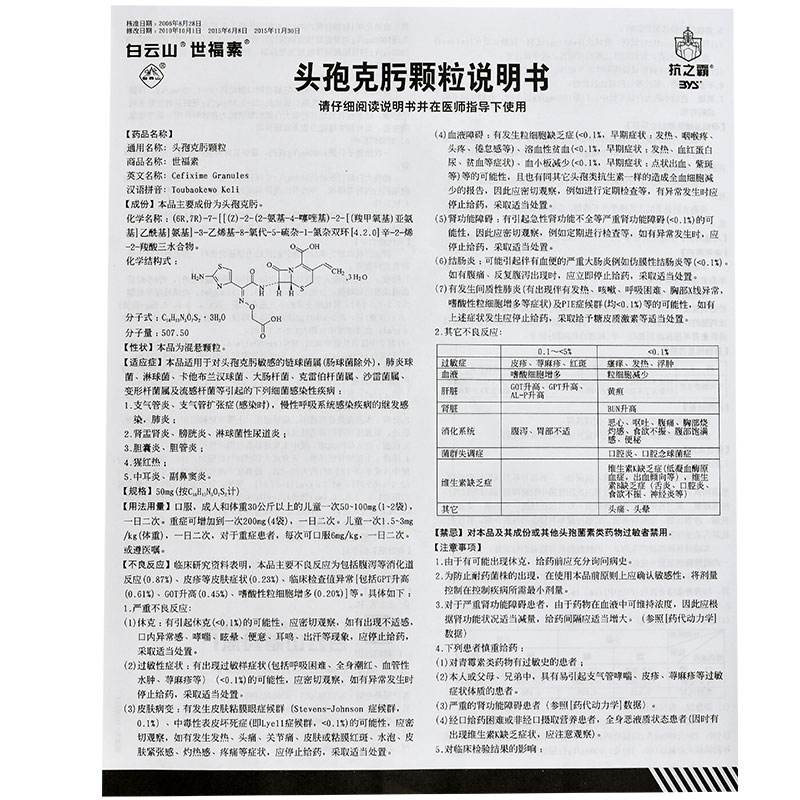 世福素 Shifu Su Cefchoma гранулы 50 мг*6 мешков/коробка