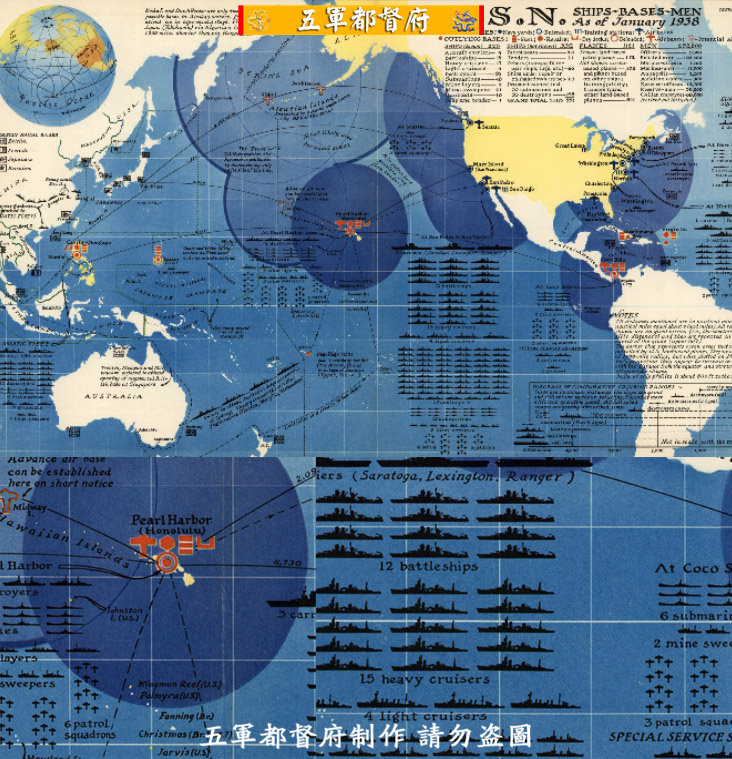 Схема схема высокой четкости базы ВМС США военно-морского флота во Второй мировой войне (английская версия 1938 года)