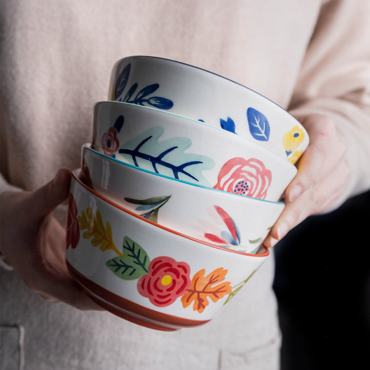 Современная домохозяйка четыре сезона Керамическая глазурь Caixin Home Home Deep Rice Rice Rice Rice Hanyu Muck Cup Milk Cup Mow