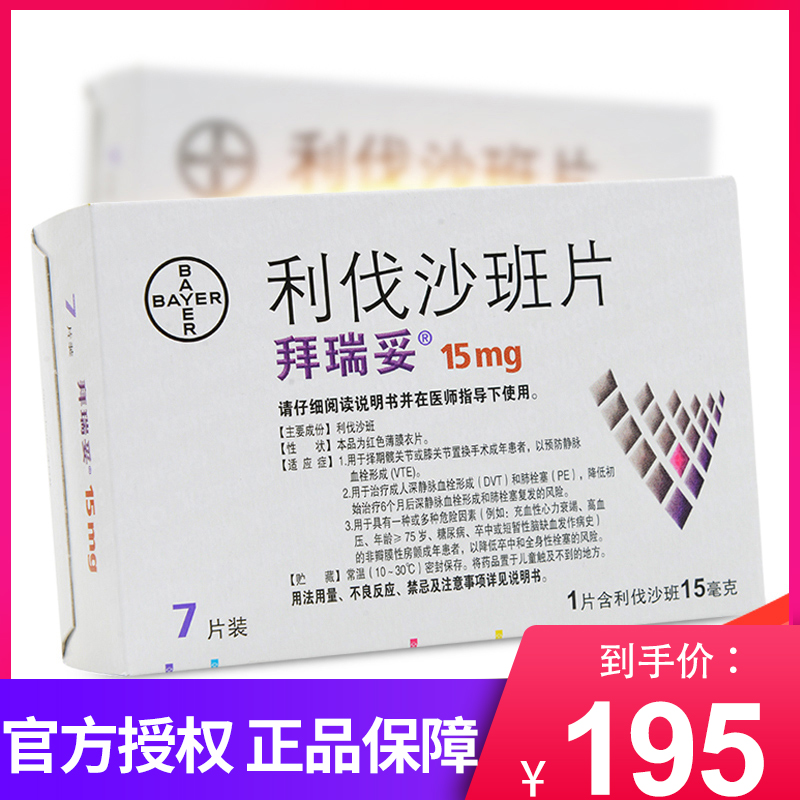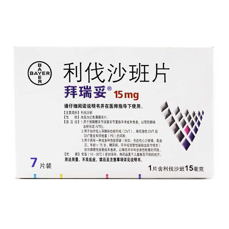 拜瑞妥 15 мг*7 таблеток/коробка для таблеток Bayerchelvaria для взрослых пациентов для операции по замене тазобедренного или колен